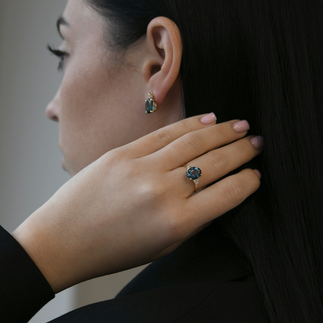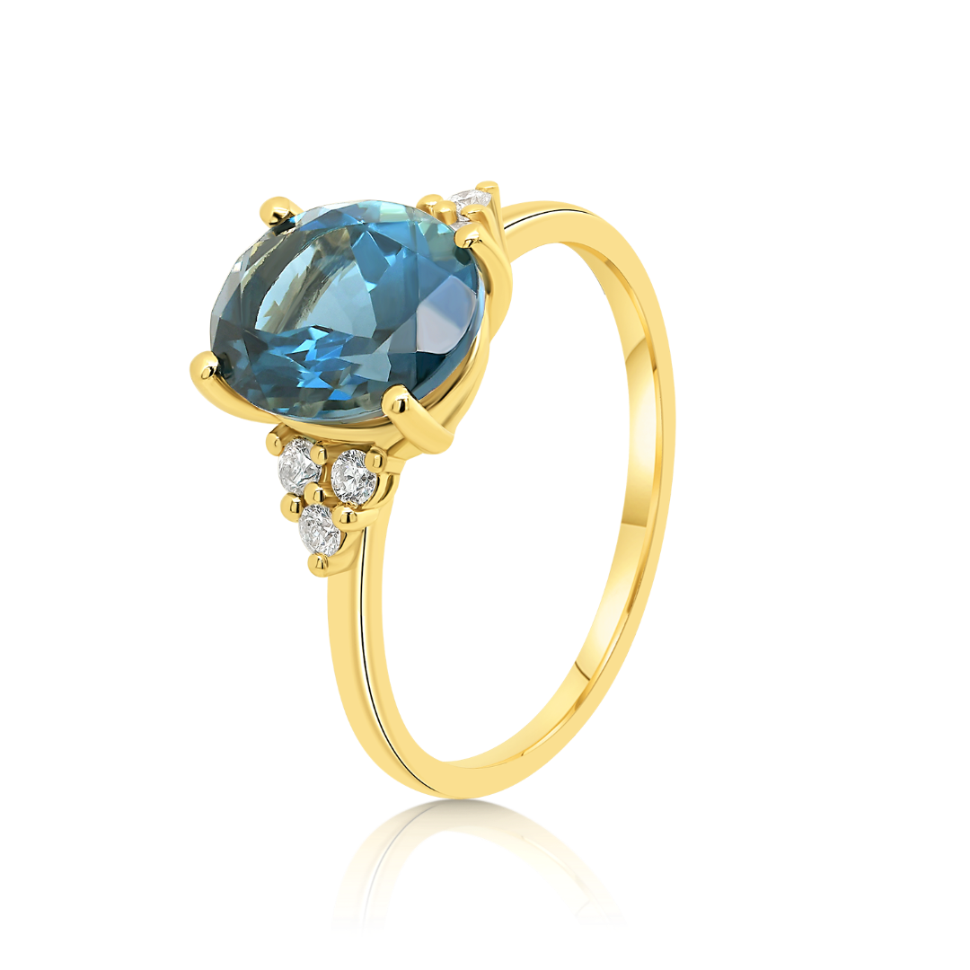 Inel din aur galben de 18K, cu Topaz și Diamante naturale