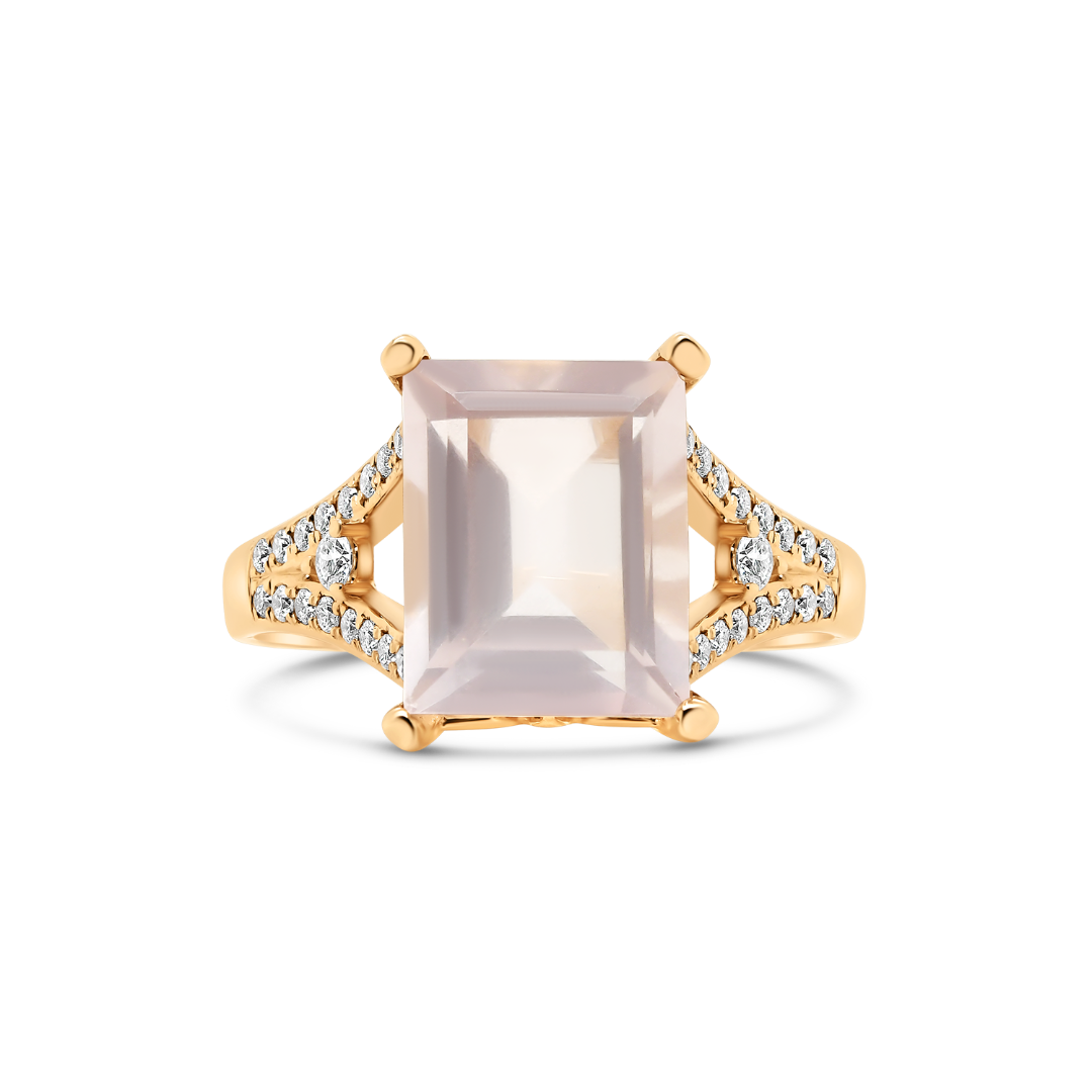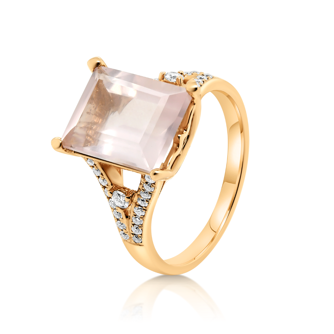 Inel din aur roz de 18K cu Pink Quartz și Diamante naturale
