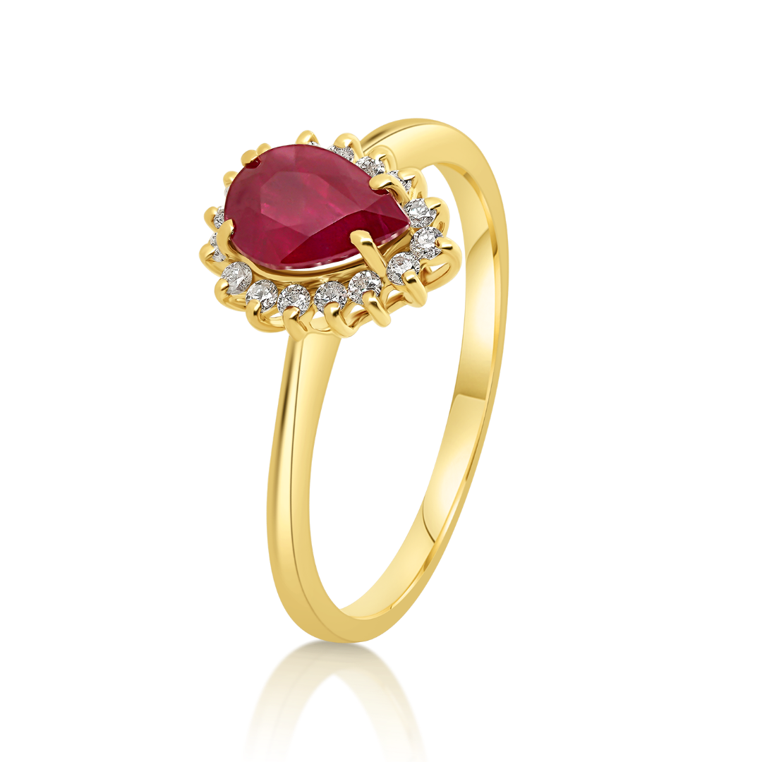 Inel din aur galben de 18K cu Rubin și Diamante naturale