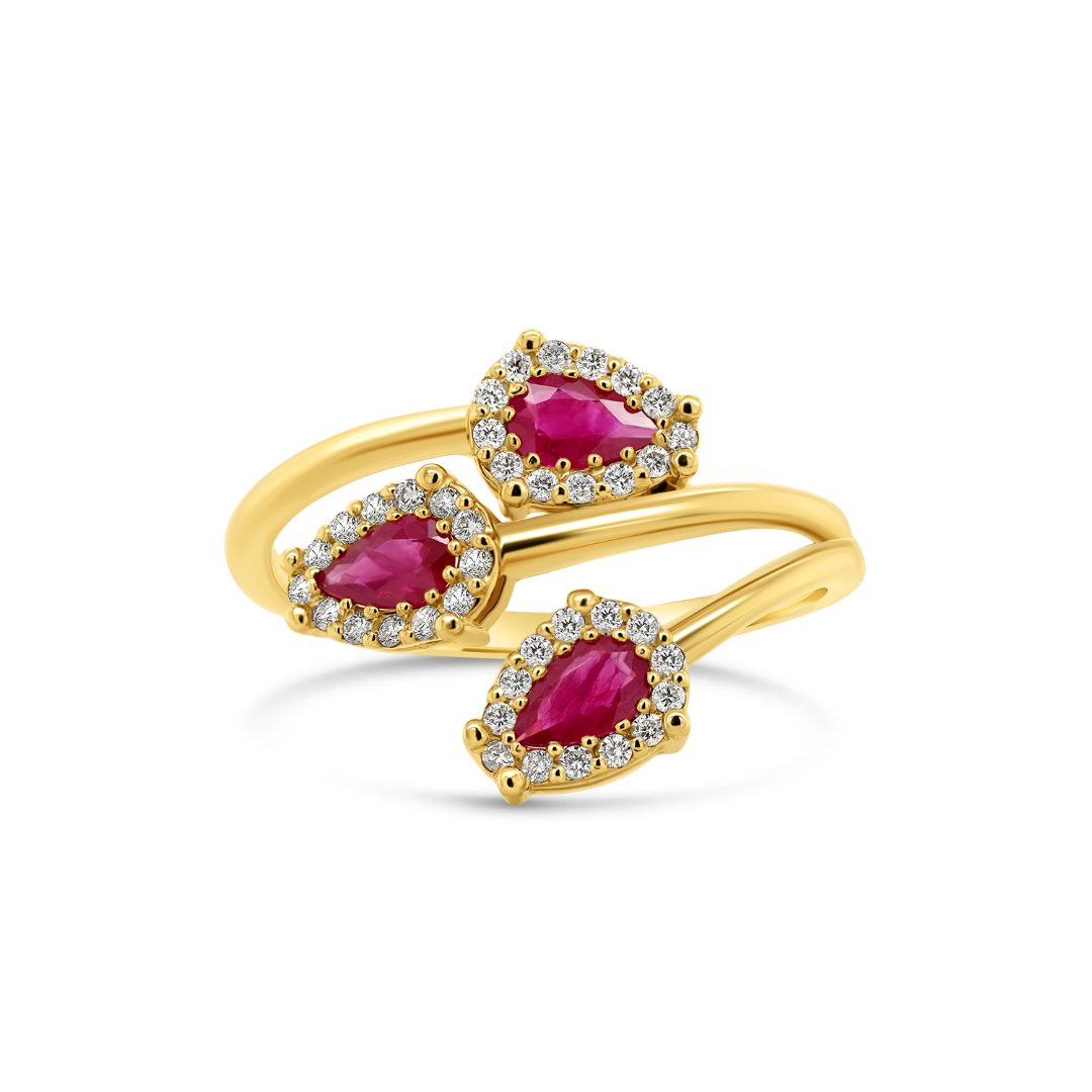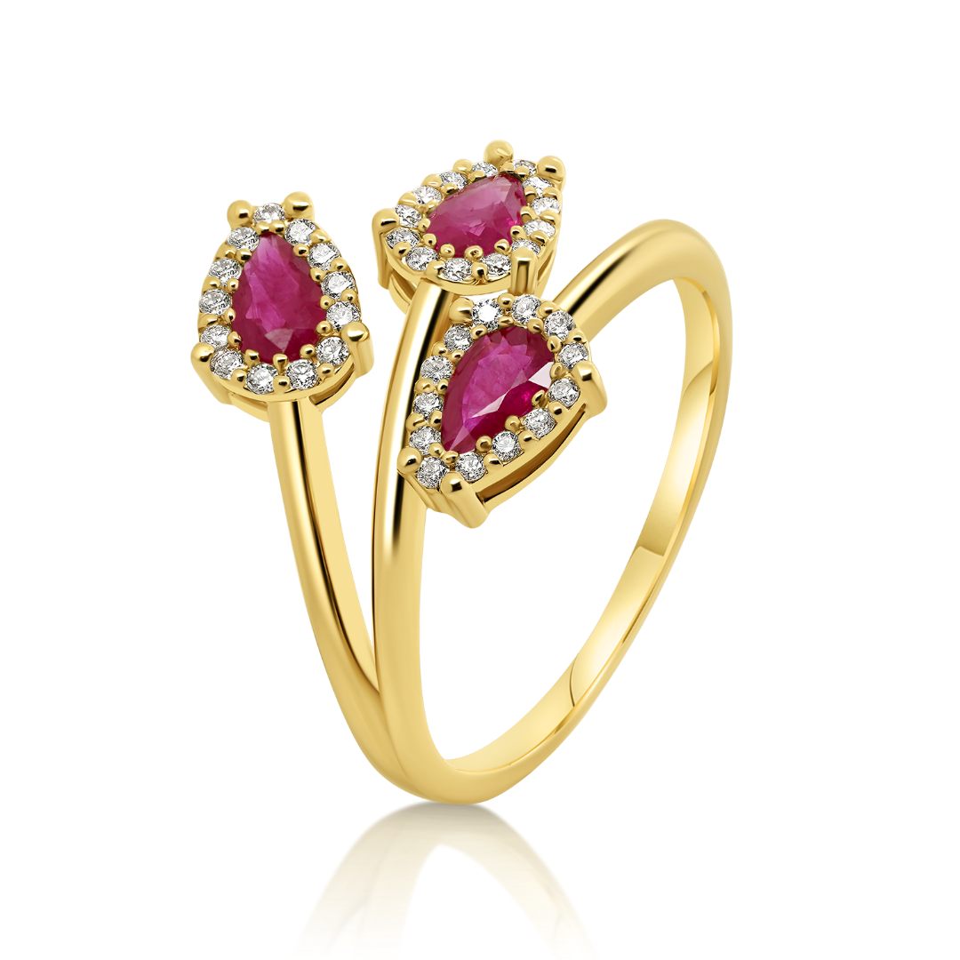 Inel din aur galben de 18K cu Rubine și Diamante naturale.