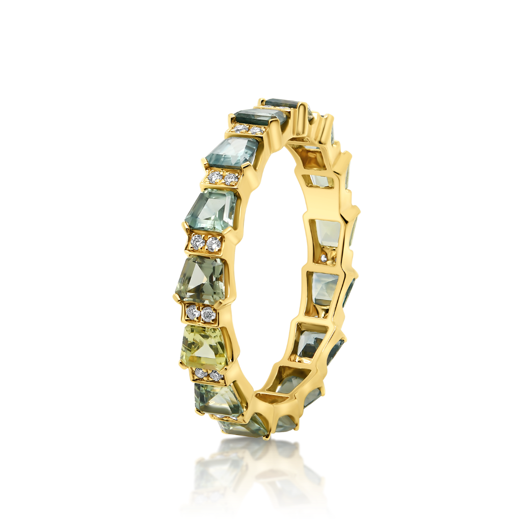 Inel din aur galben de 18K cu Safire fancy și Diamante naturale