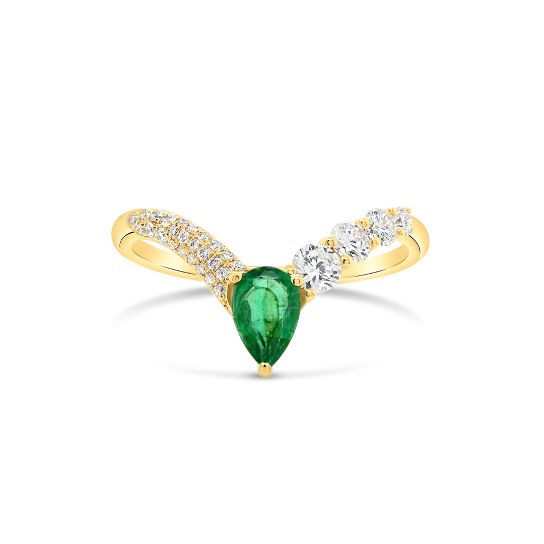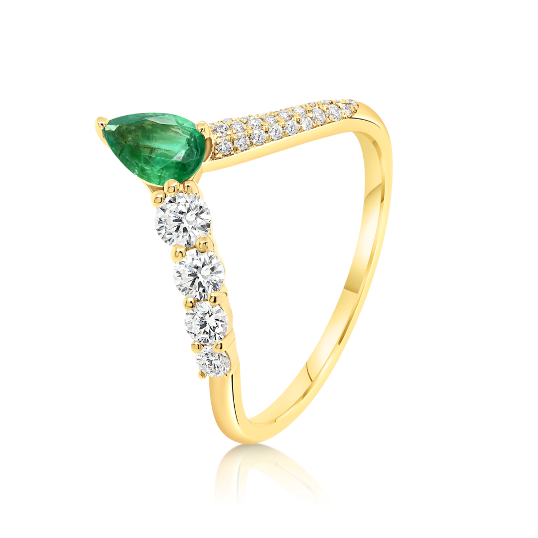 Inel din aur galben de 18K, cu un Smarald de 0.36ct și 29 de Diamante naturale Round Brilliant cu o greutate totală de 0.314ct.