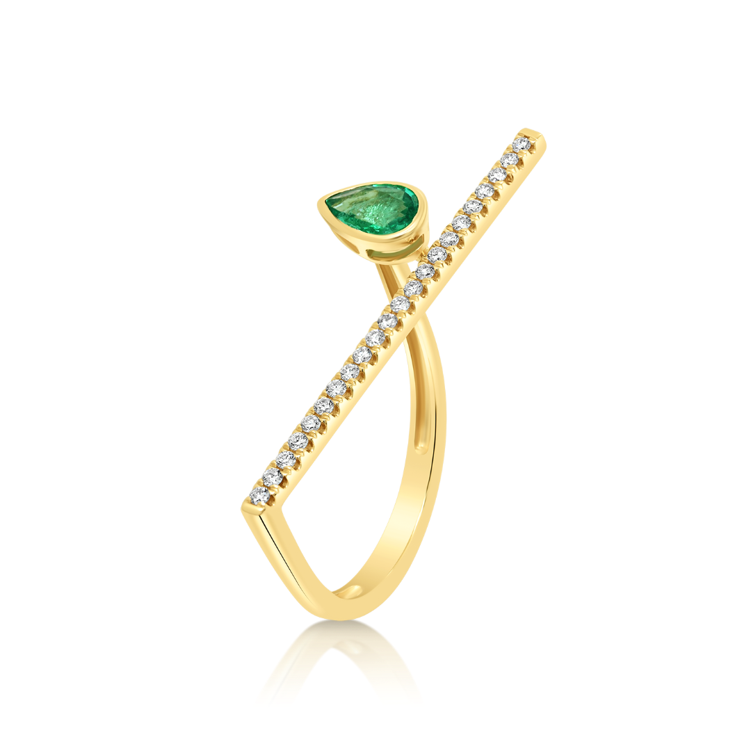 Inel din aur galben de 18K cu Smarald și Diamante naturale