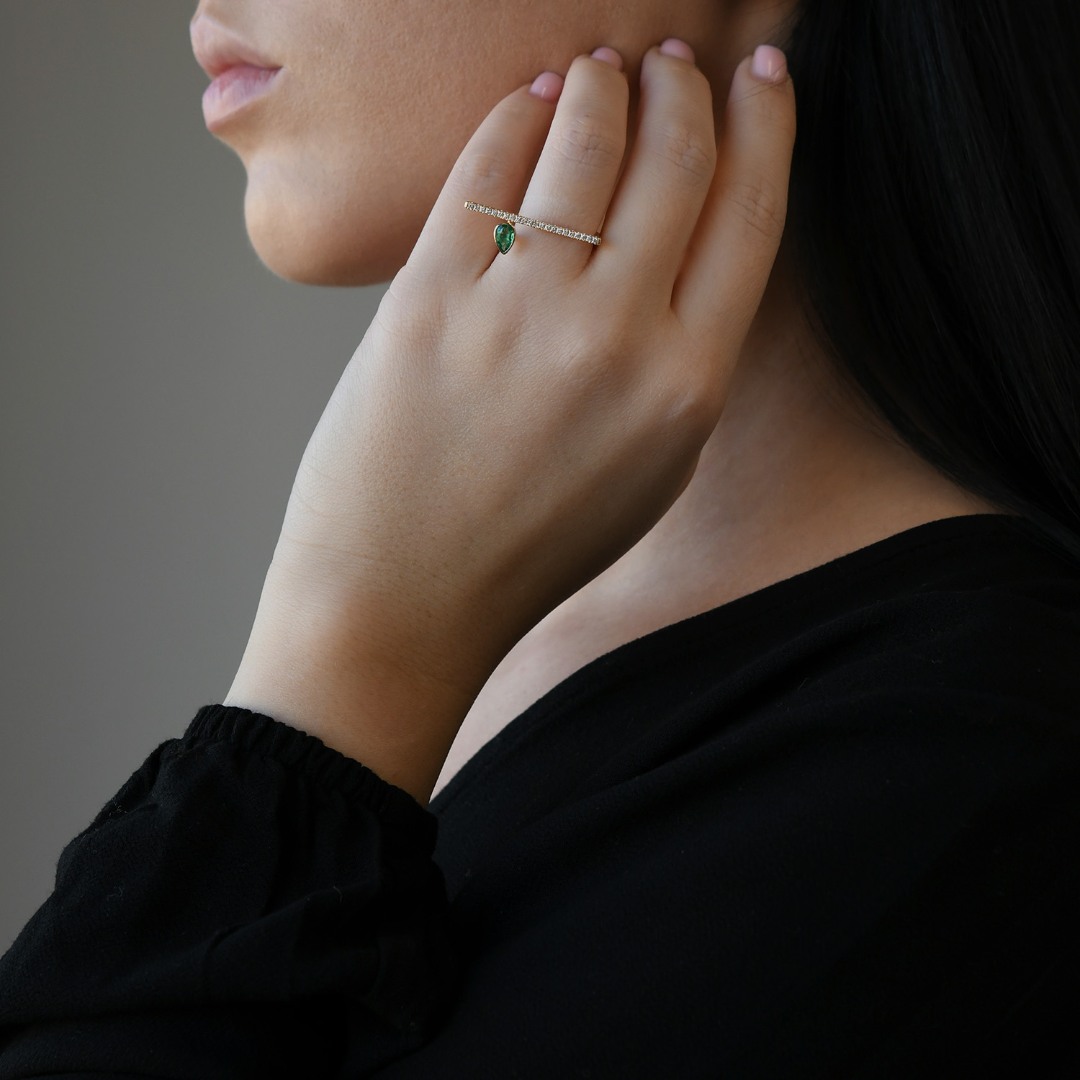Inel din aur galben de 18K încrustat cu un Smarald și 22 de Diamante Brilliant cut.