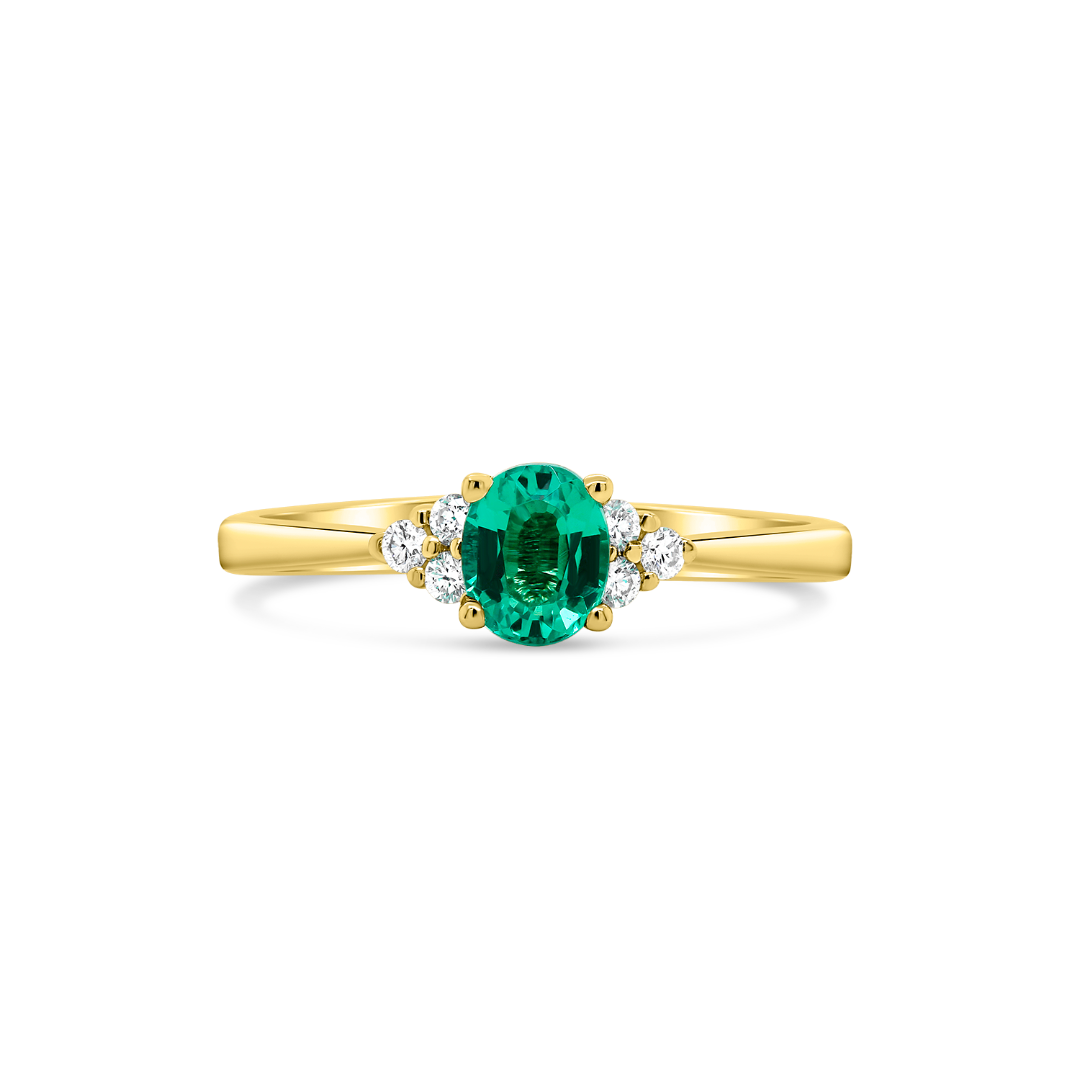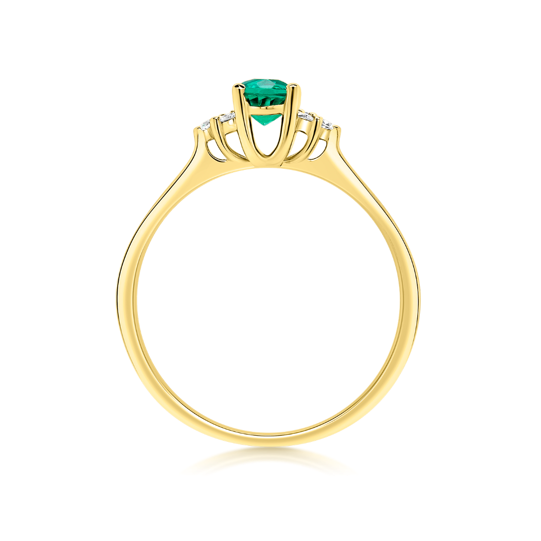 Inel din aur galben de 18K cu Smarald și Diamante naturale