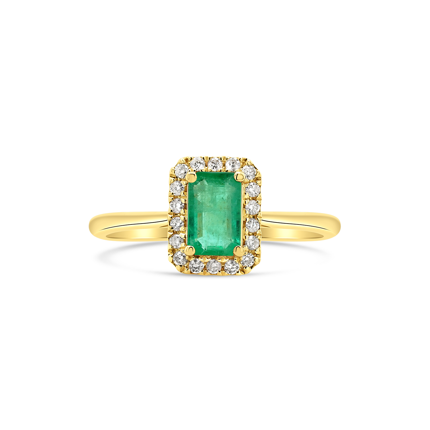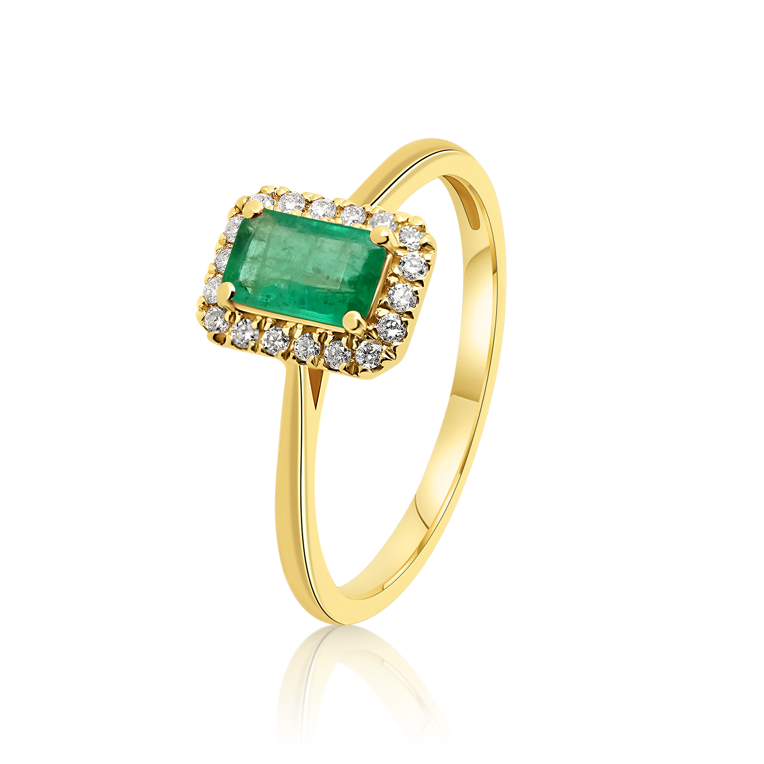 Inel din aur galben de 18K cu Smarald și Diamante naturale