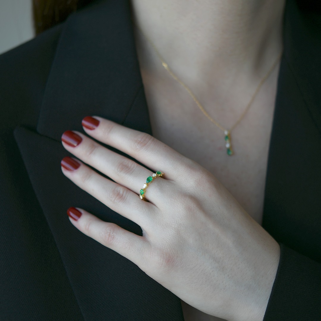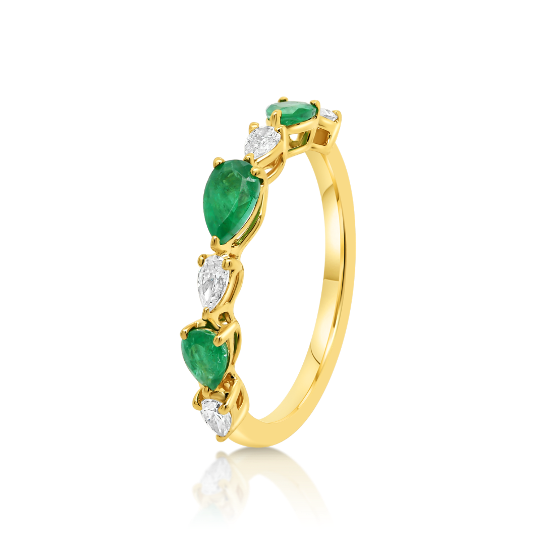 Inel din aur galben de 18K cu Smaralde și Diamante naturale