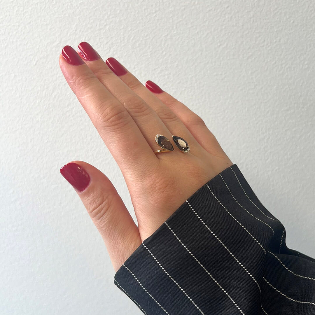 Inel din aur galben de 18K cu Smoky Quartz si Diamante naturale