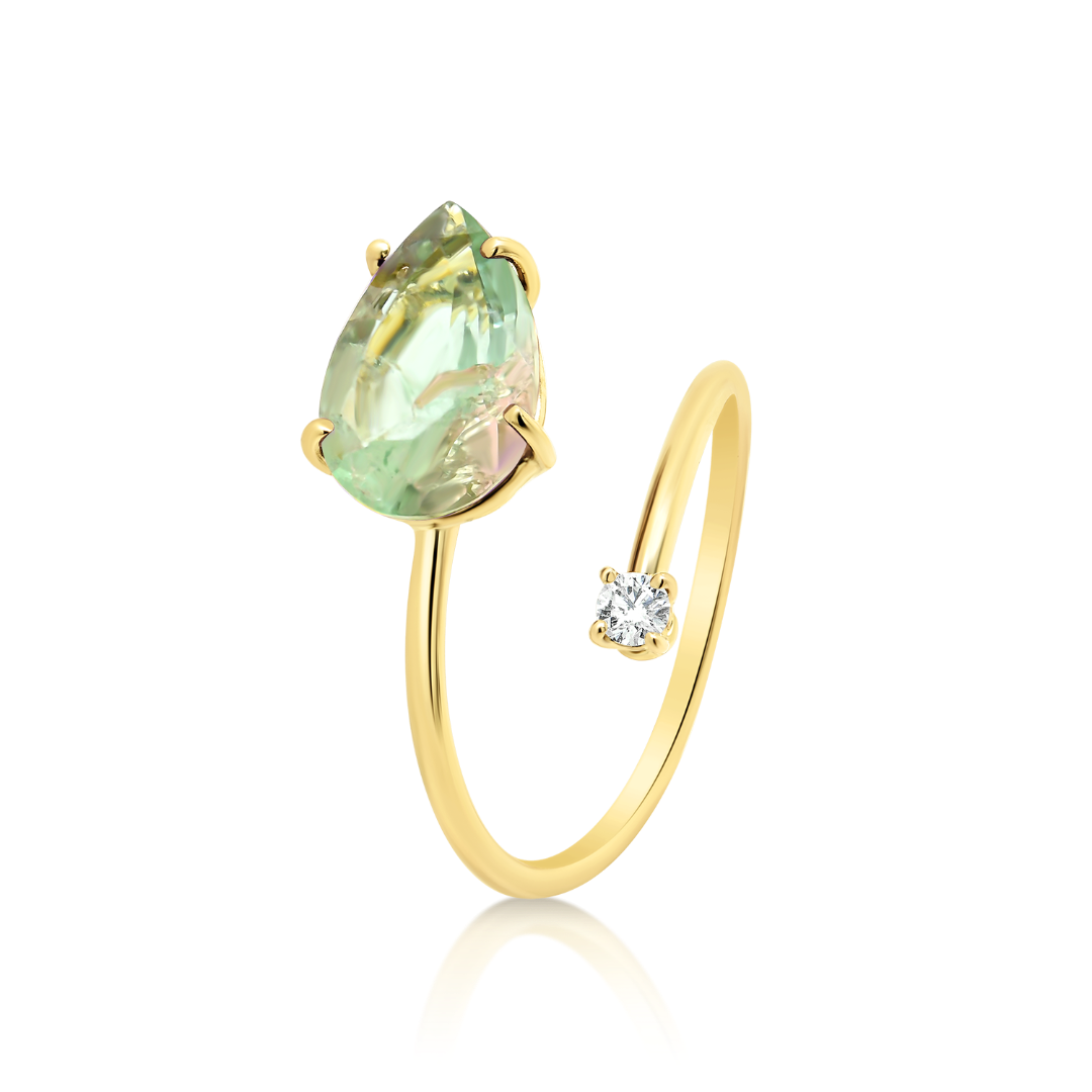 Inel din aur galben de 18K cu Turmalin și Diamant natural