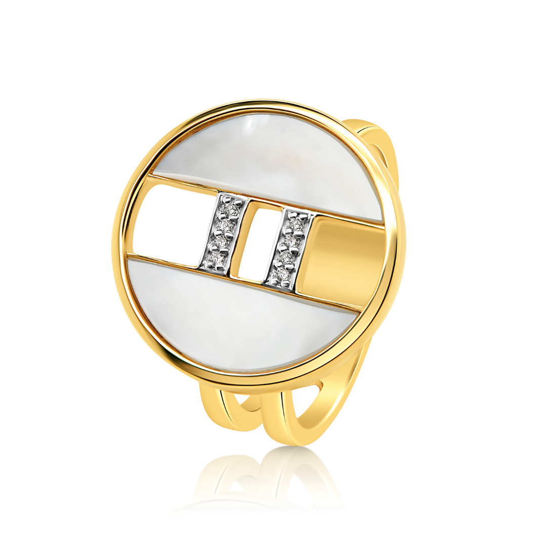 Inel din aur galben de 18K, cu Diamante și Sidef