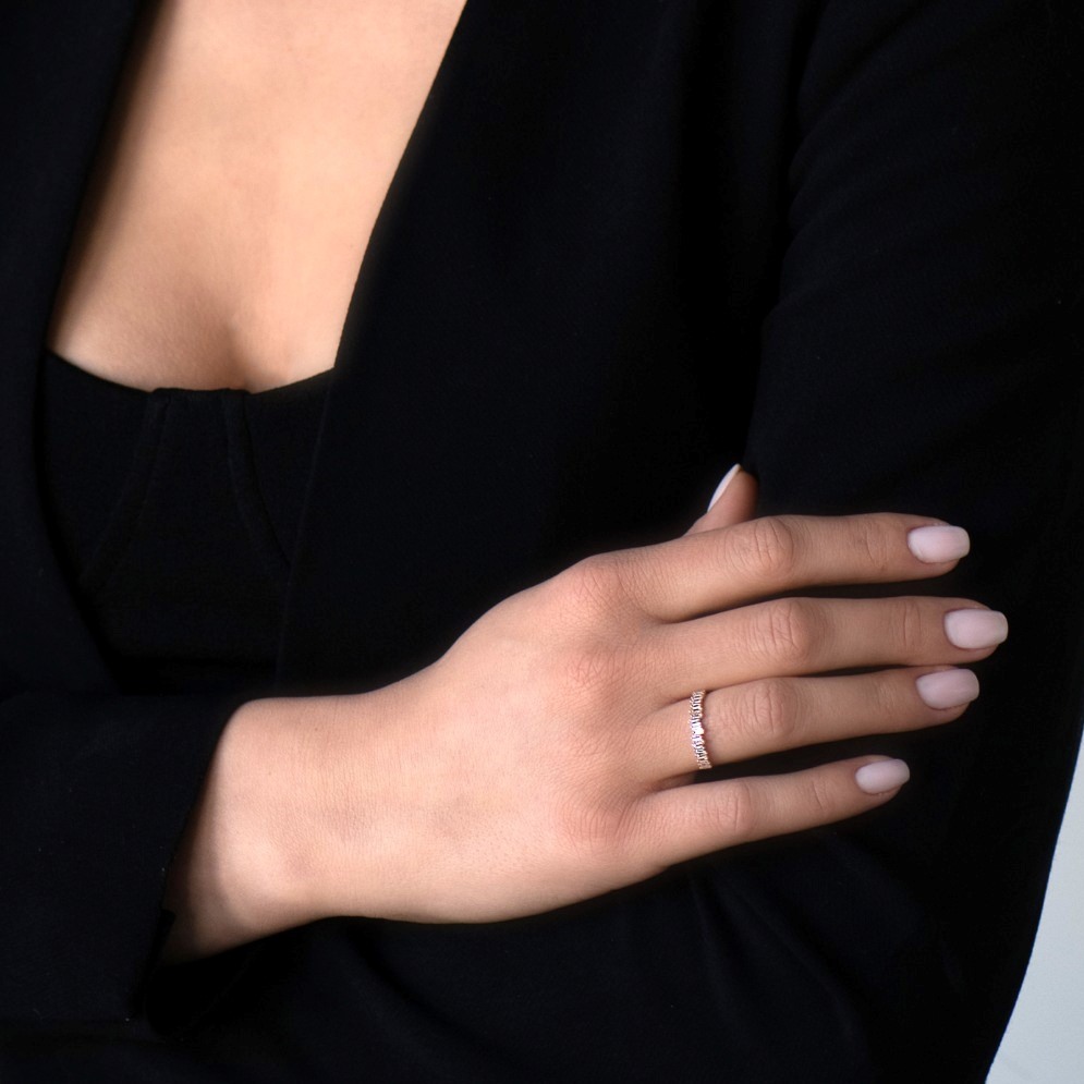 Inel din aur roz de 18K încrustat cu Diamante naturale Baguette de 0.43ct.