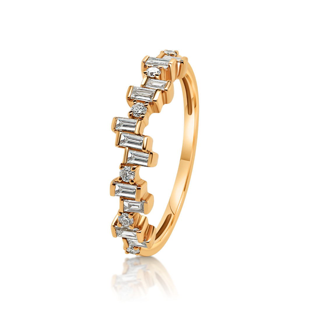 Inel din aur roz de 18K cu Diamante naturale Baguette și Round Brilliant.