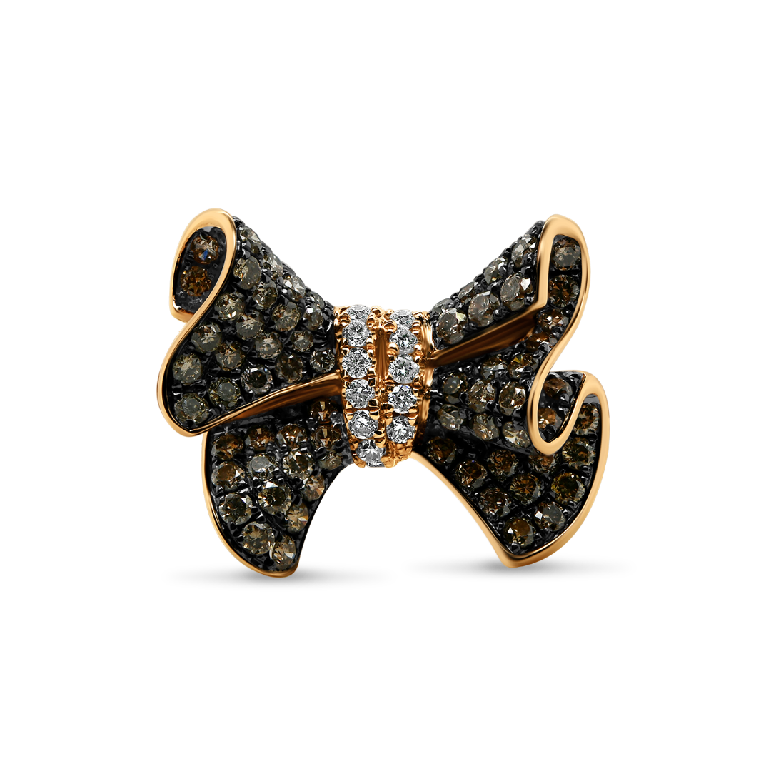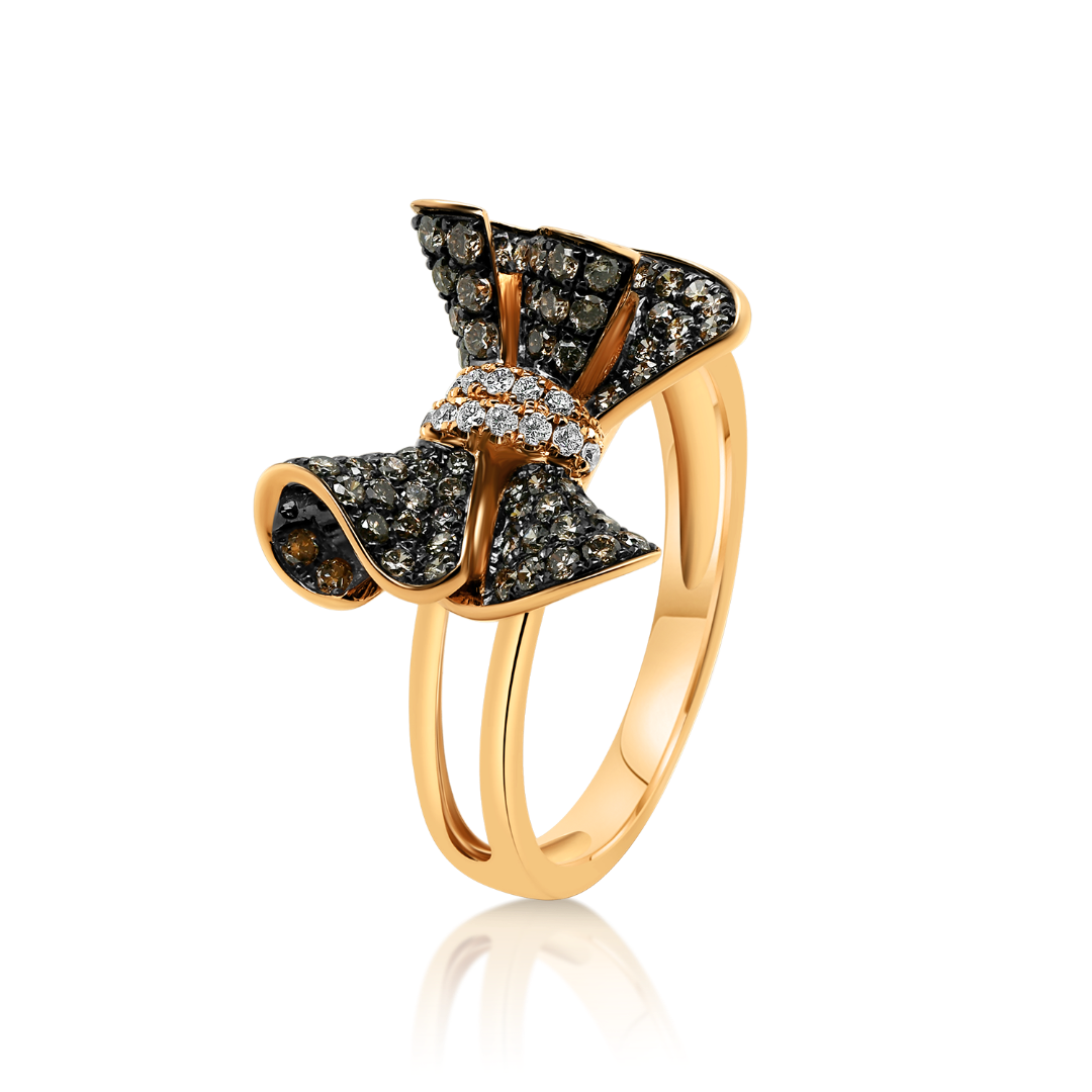 Inel din aur roz de 18K, încrustat cu Diamante incolore de 0.13ct și Diamante Champagne de 1.01ct.