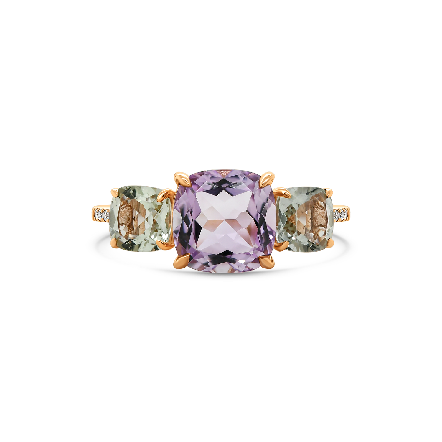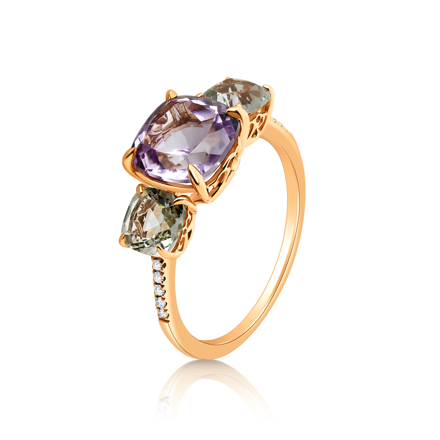 Inel din aur roz de 14K cu Ametiste și Diamante naturale