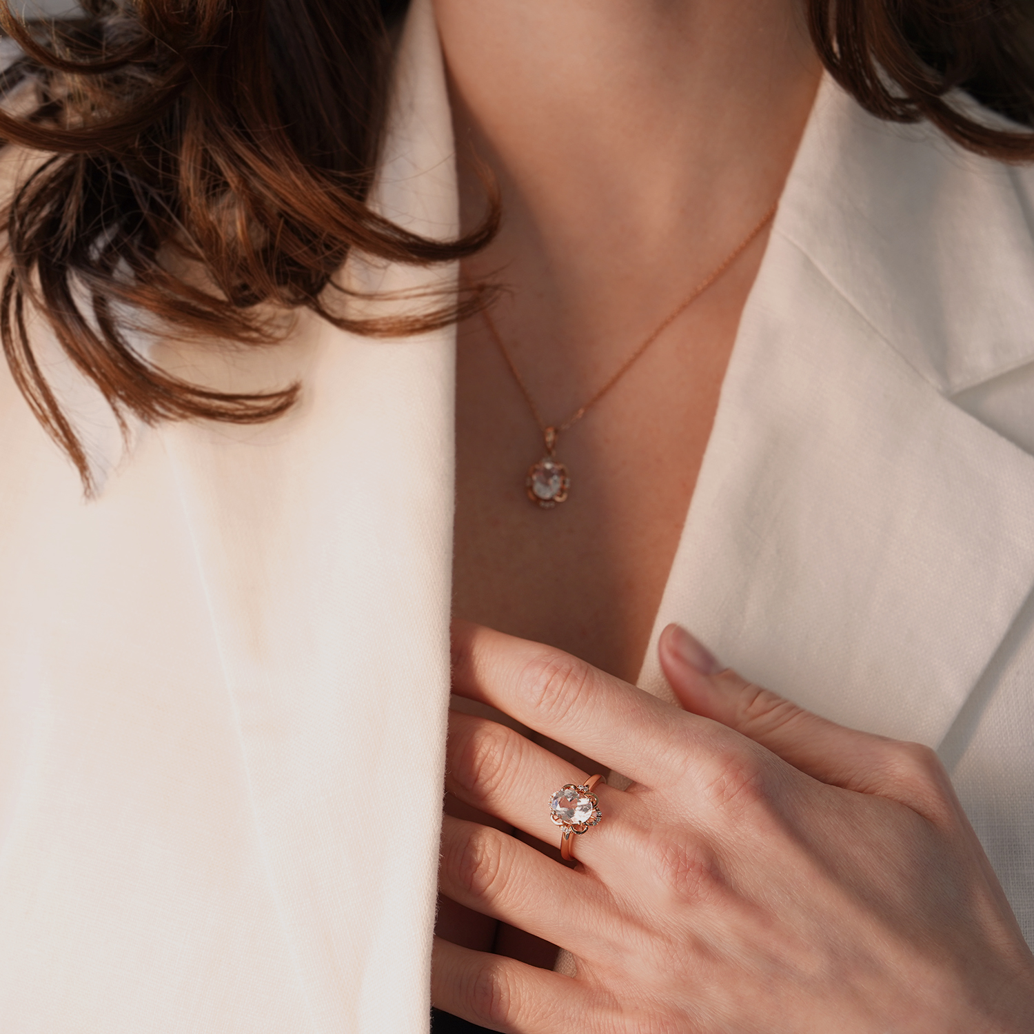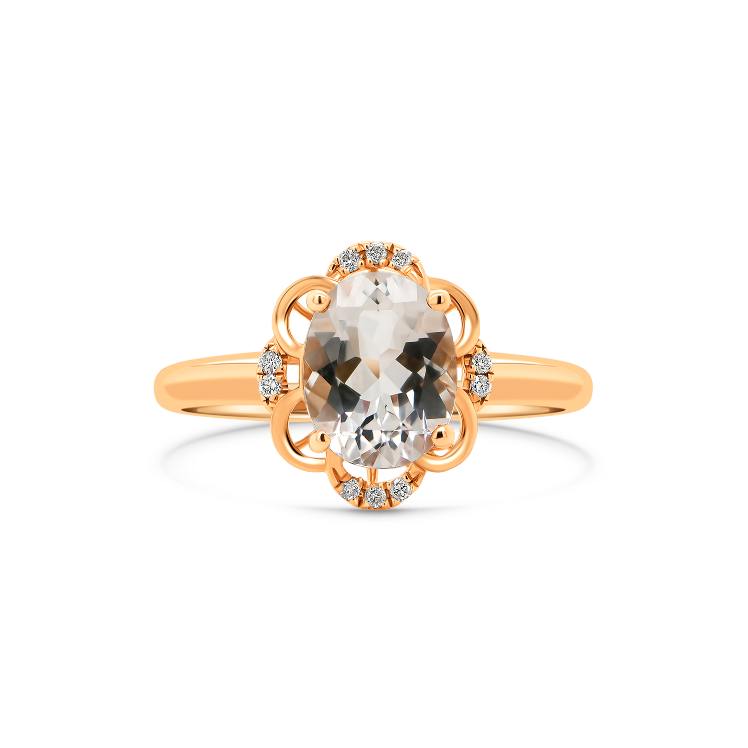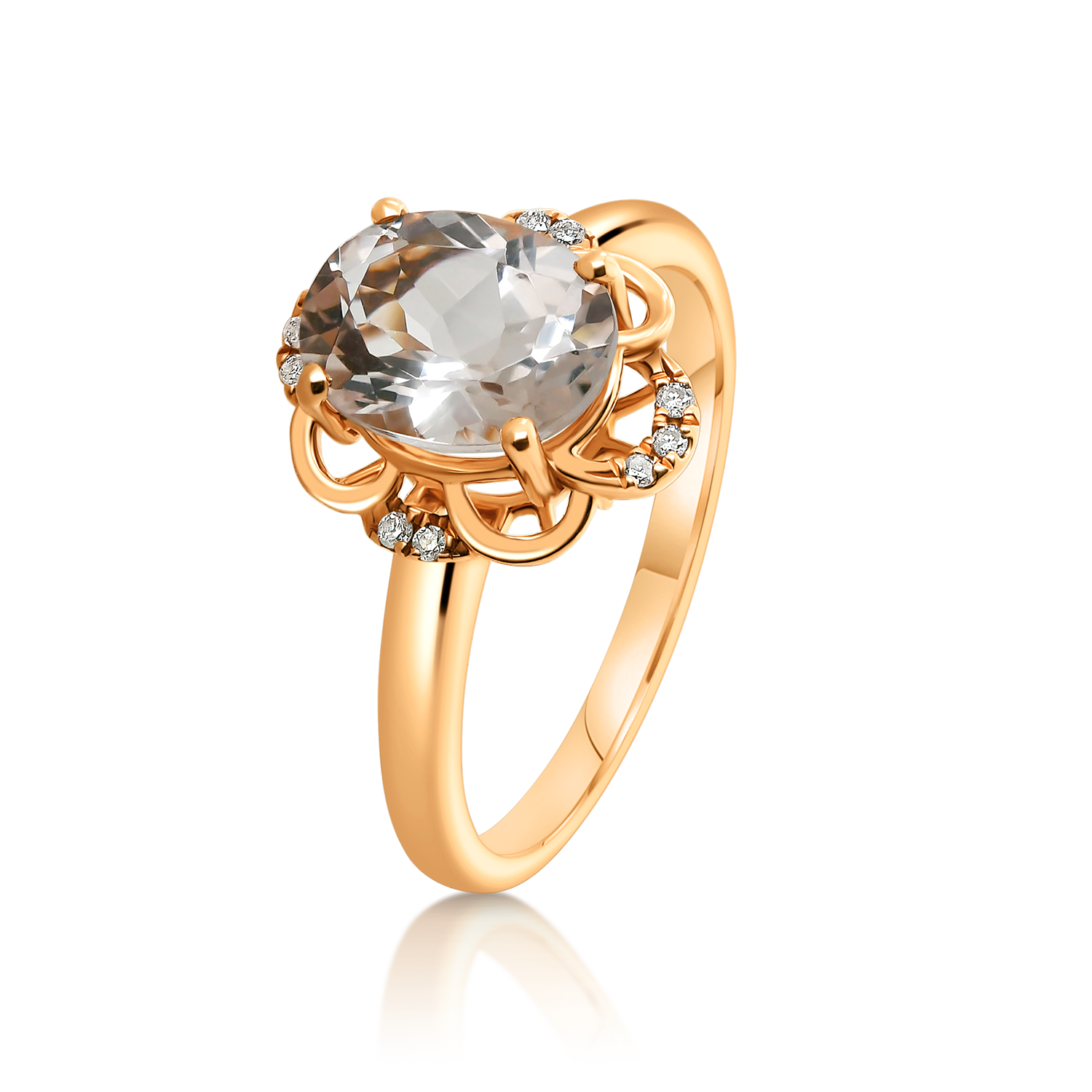 Inel din aur roz de 14K cu Morganit și Diamante naturale