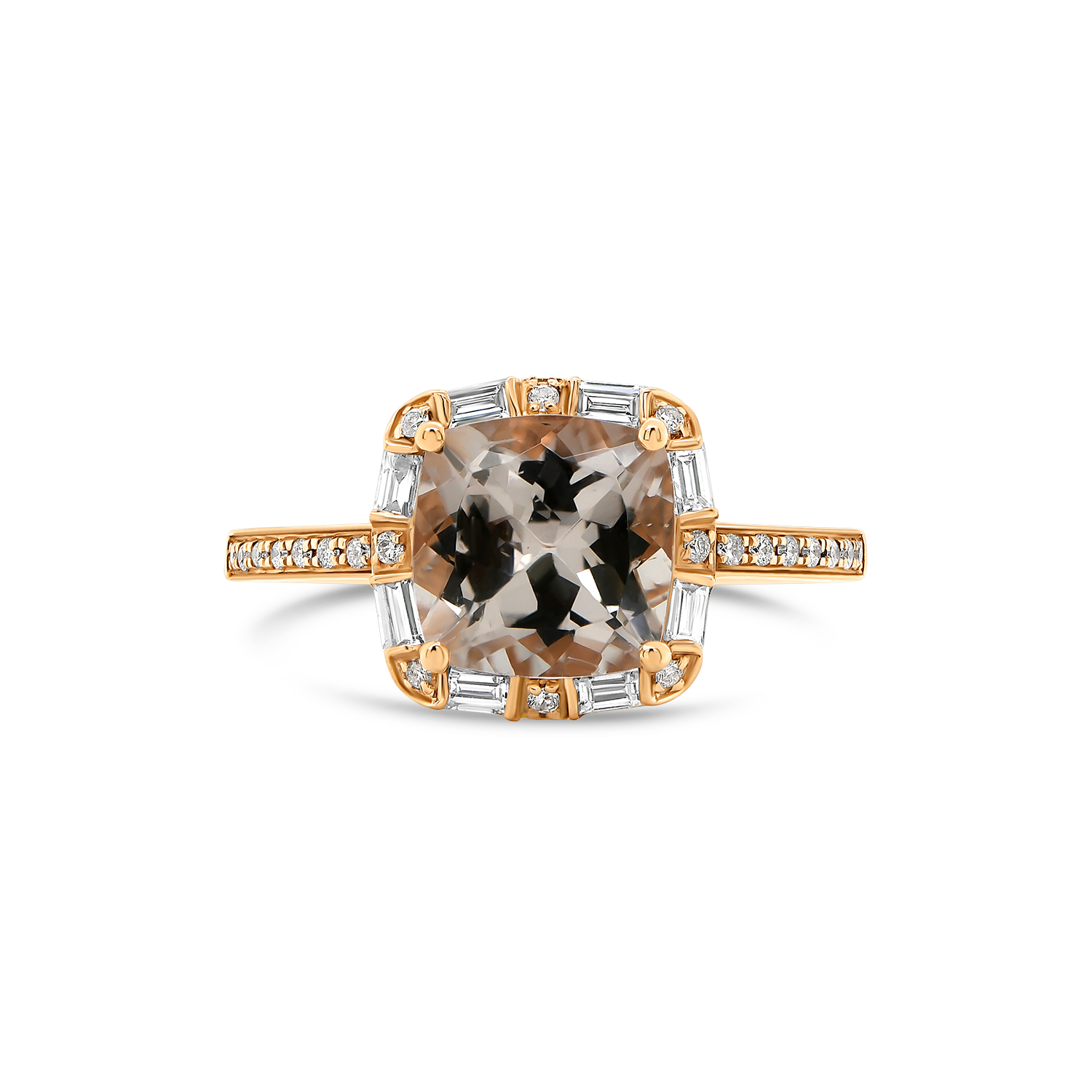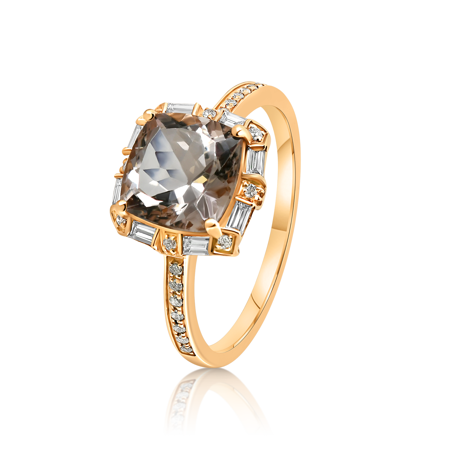 Inel din aur roz de 14K cu Morganit și Diamante naturale