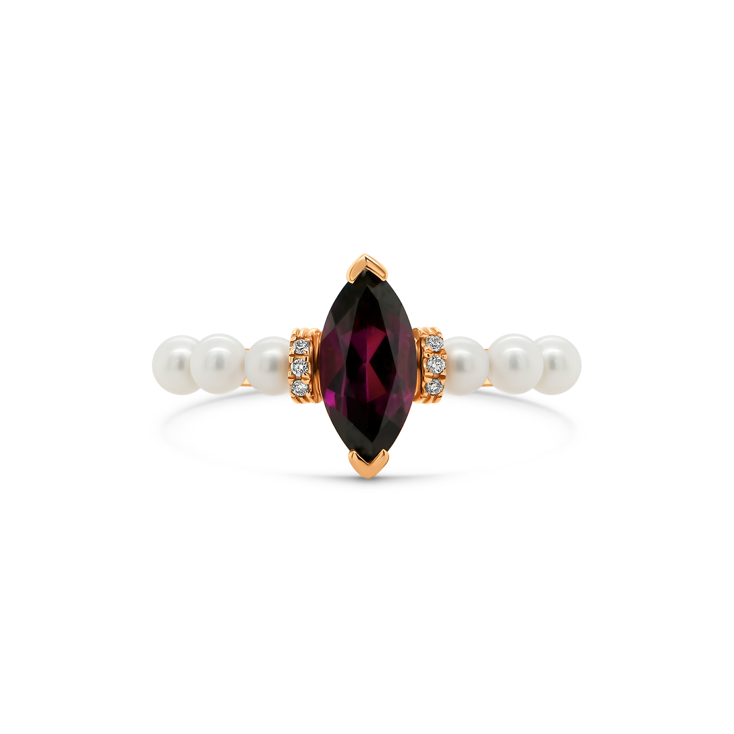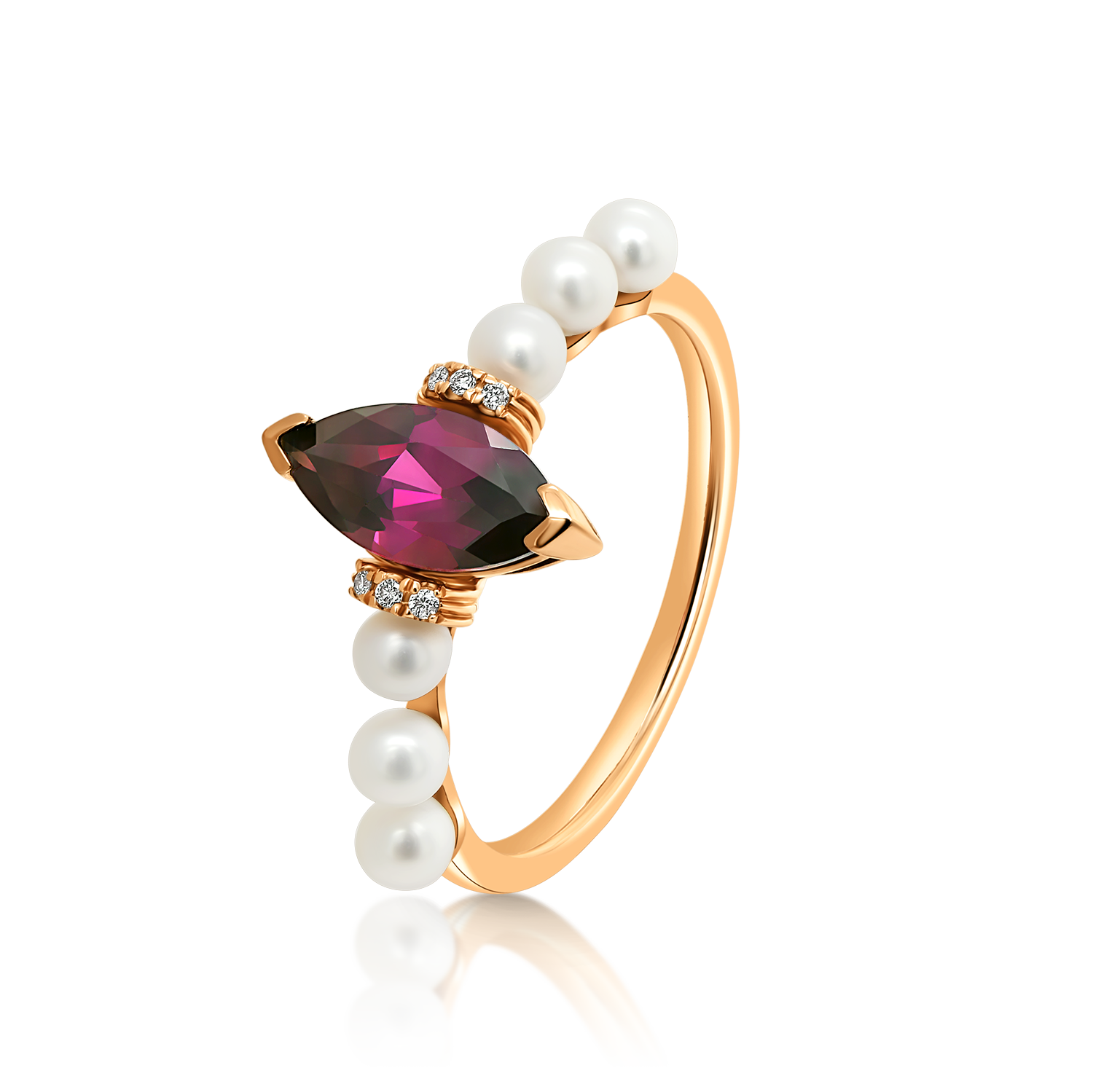 Inel din aur roz de 14K cu Perle, Rodolit și Diamante naturale