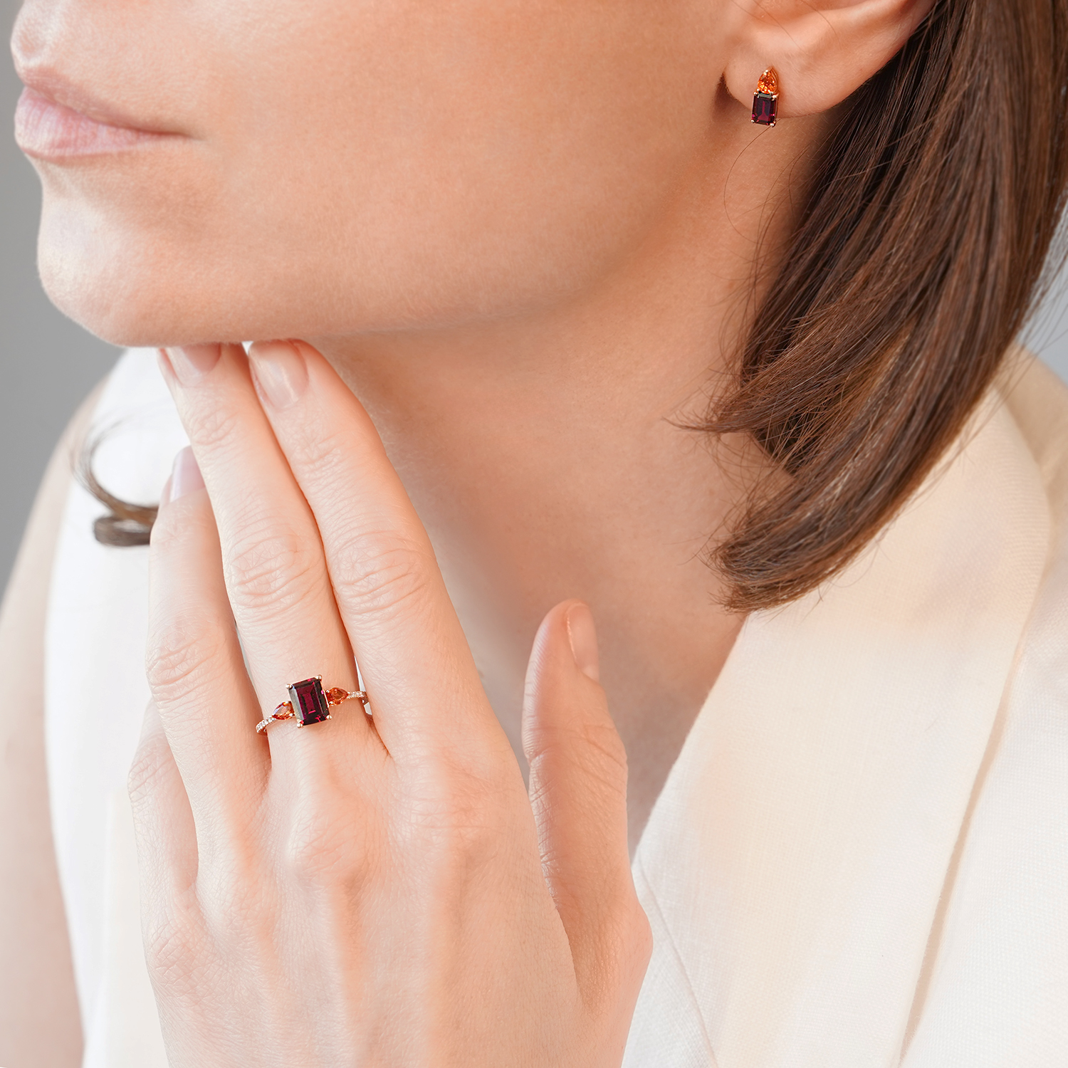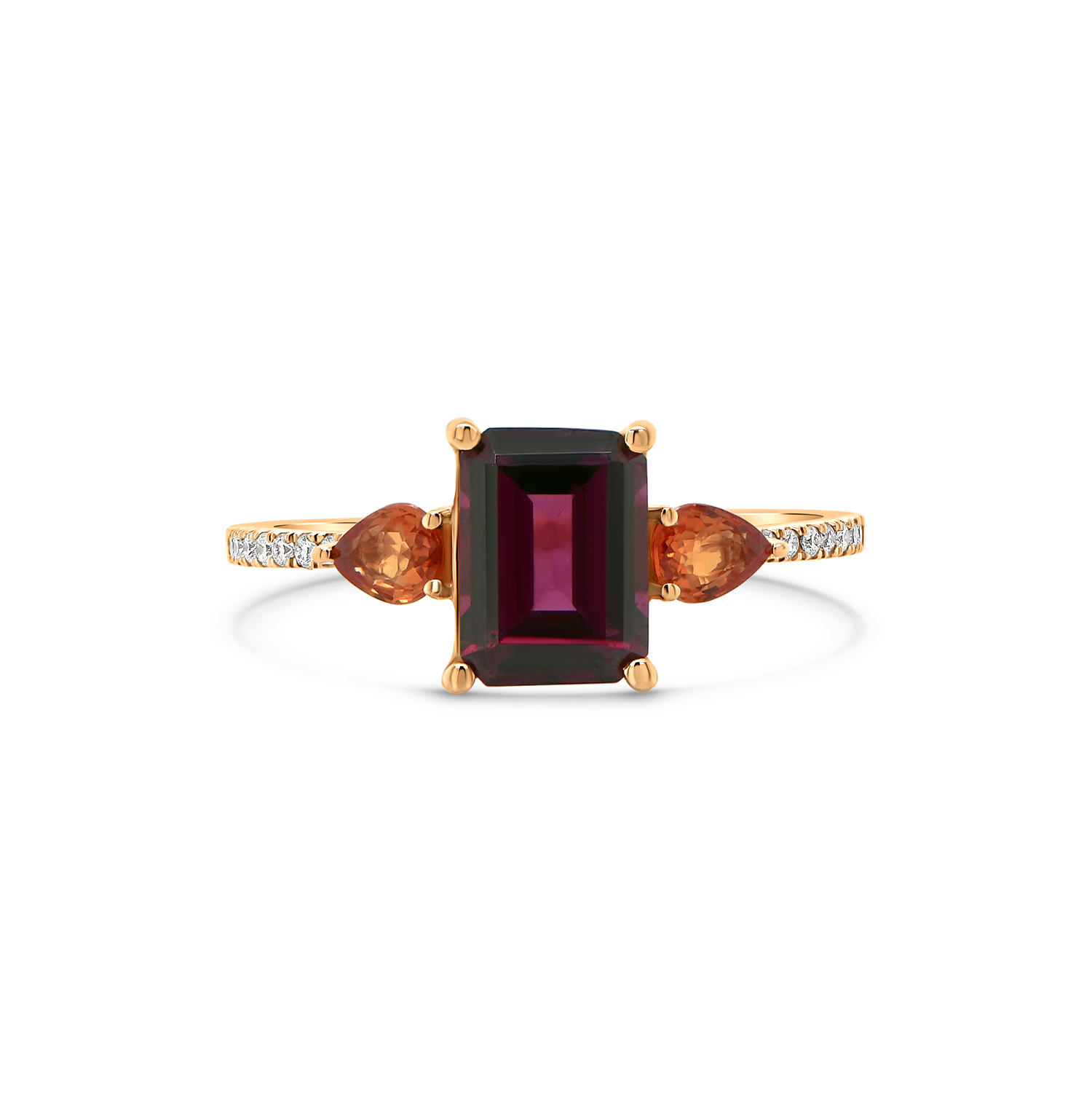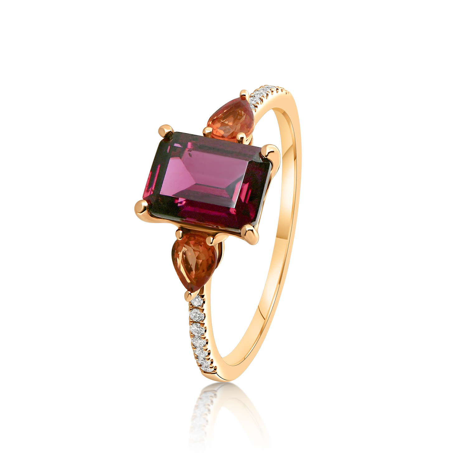 Inel din aur roz de 14K cu Safire, Rodolit și Diamante naturale