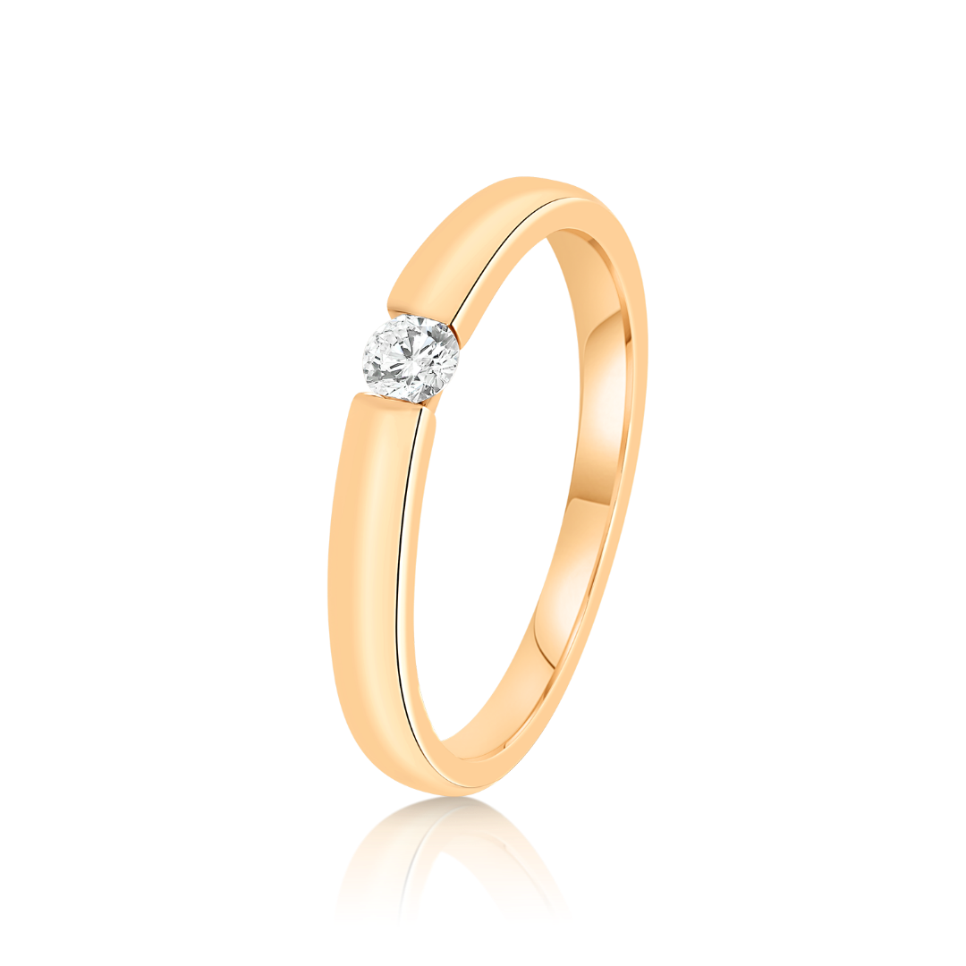 Inel din aur roz de 18K cu un Diamant natural, Round Brilliant.