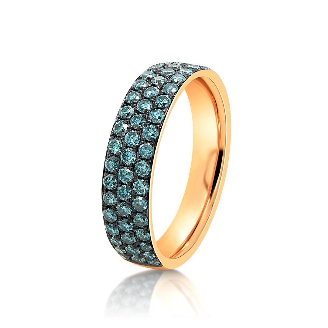 Inel din aur roz de 18K, încrustat cu 59 de Diamante Ice Blue cu o greutate totală de 0.86ct.