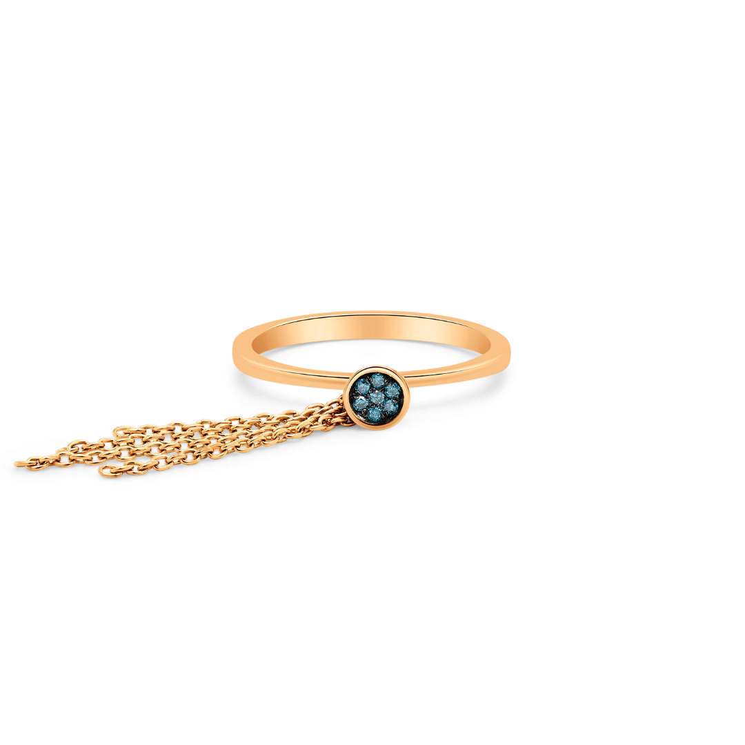 Inel din aur roz de 18K, încrustat cu 7 Diamante Ice Blue și element cu lanțuri.
