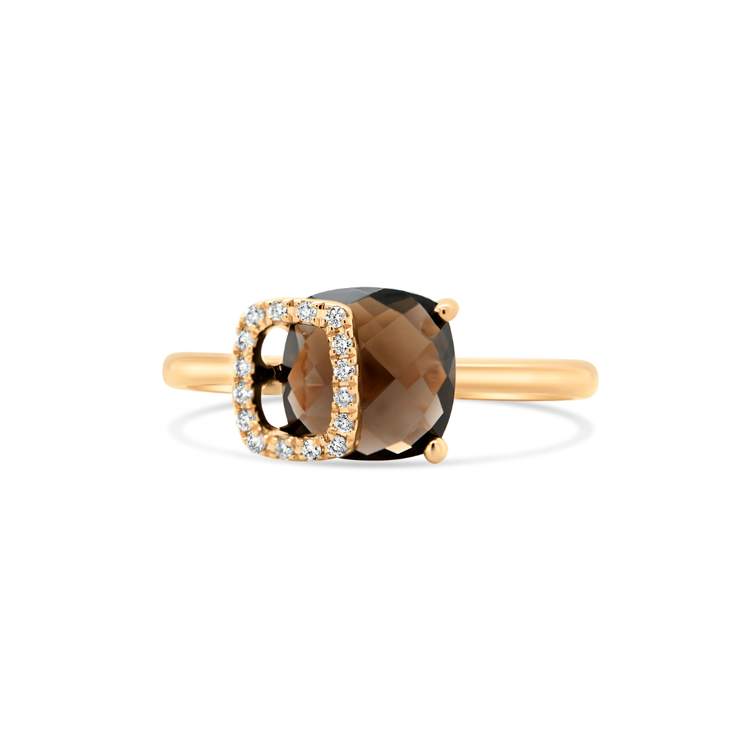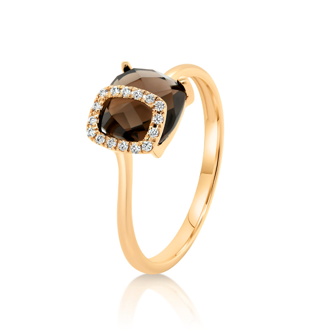 Inel din aur roz de 18K cu Diamante naturale și Smoky Quartz