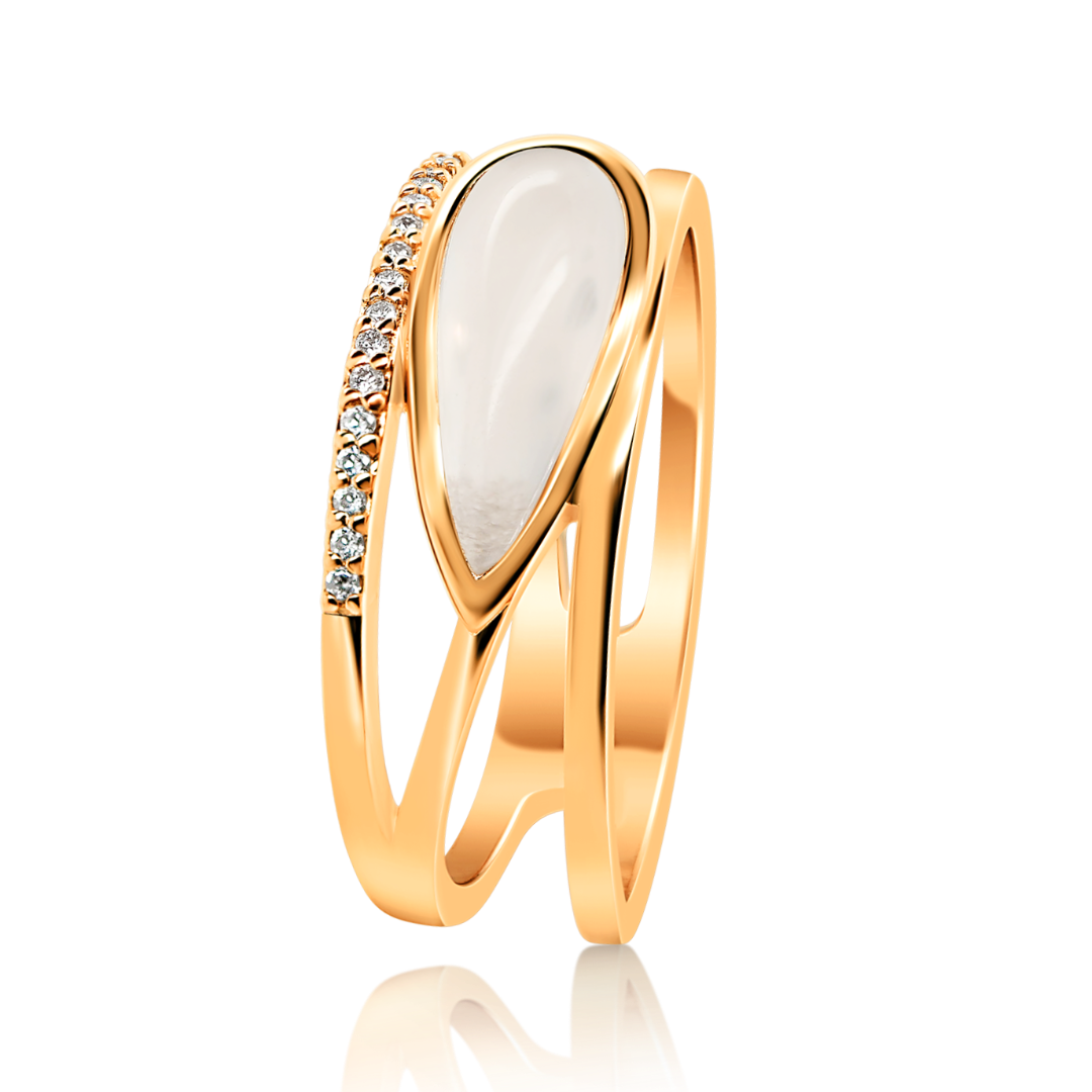 Inel din aur roz de 18K, cu Diamante naturale și piatră Calcedonie