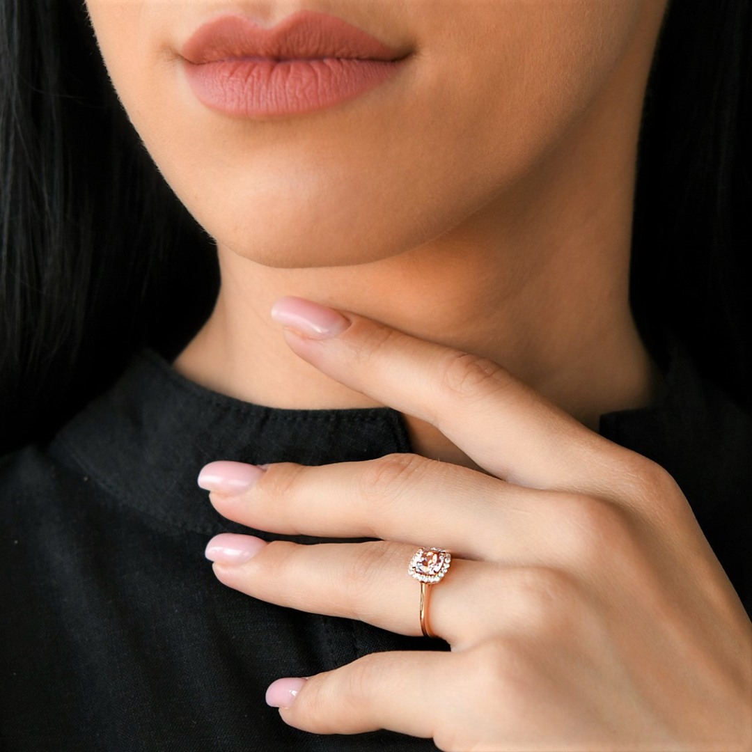 Inel din aur roz de 18K, cu Diamante și piatră Morganit