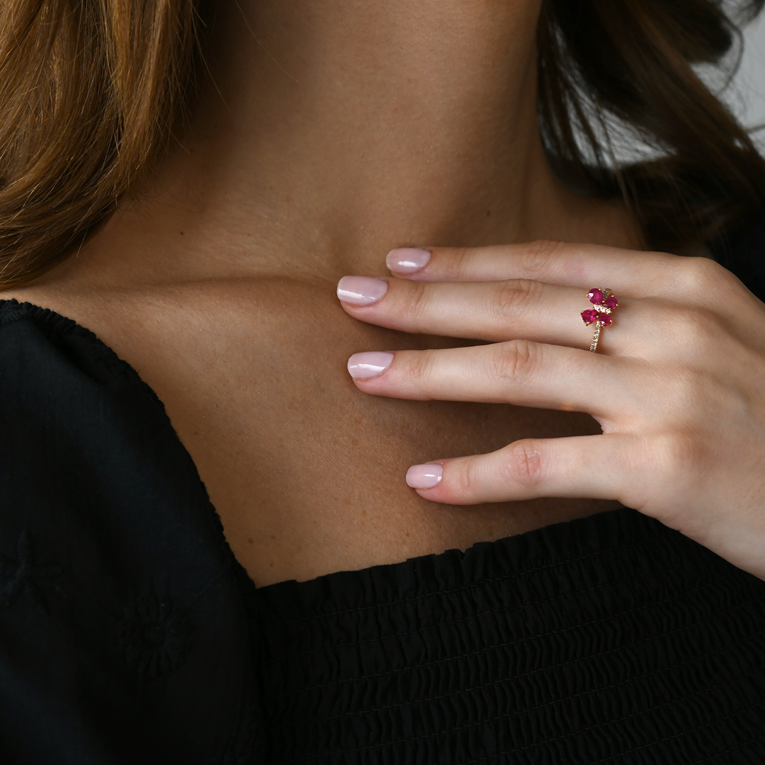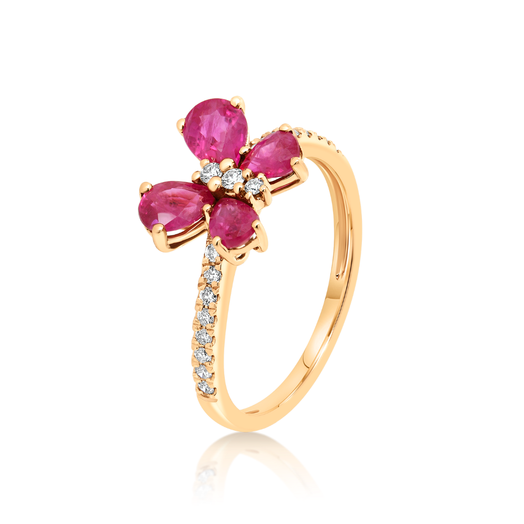 Inel din aur roz de 18K cu Rubine și Diamante naturale