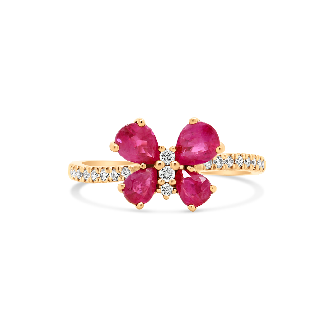 Inel din aur roz de 18K, cu 19 Diamante Round Brilliant și 4 Rubine.