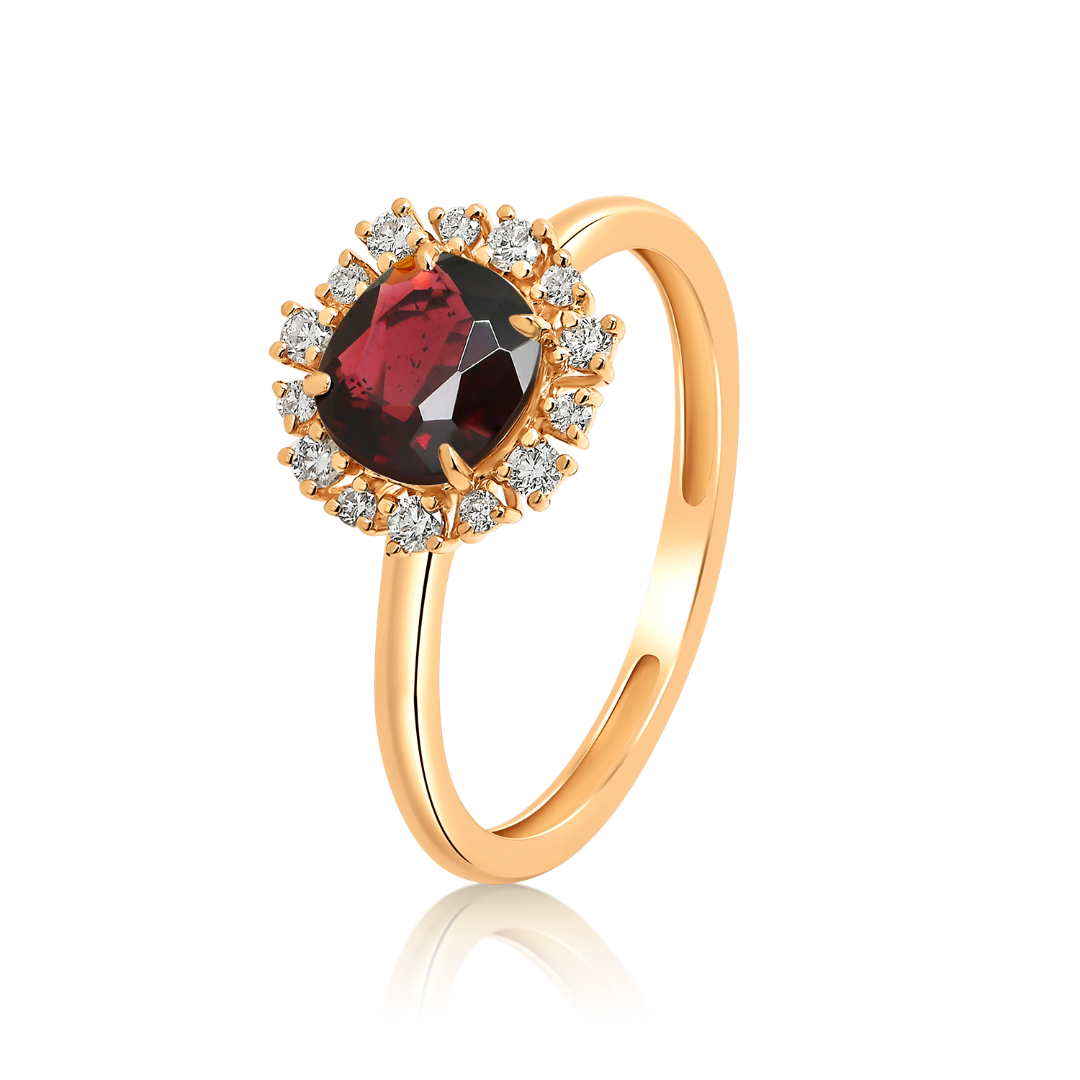 Inel din aur roz de 18K cu Granat și Diamante naturale