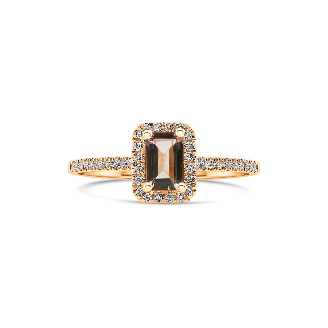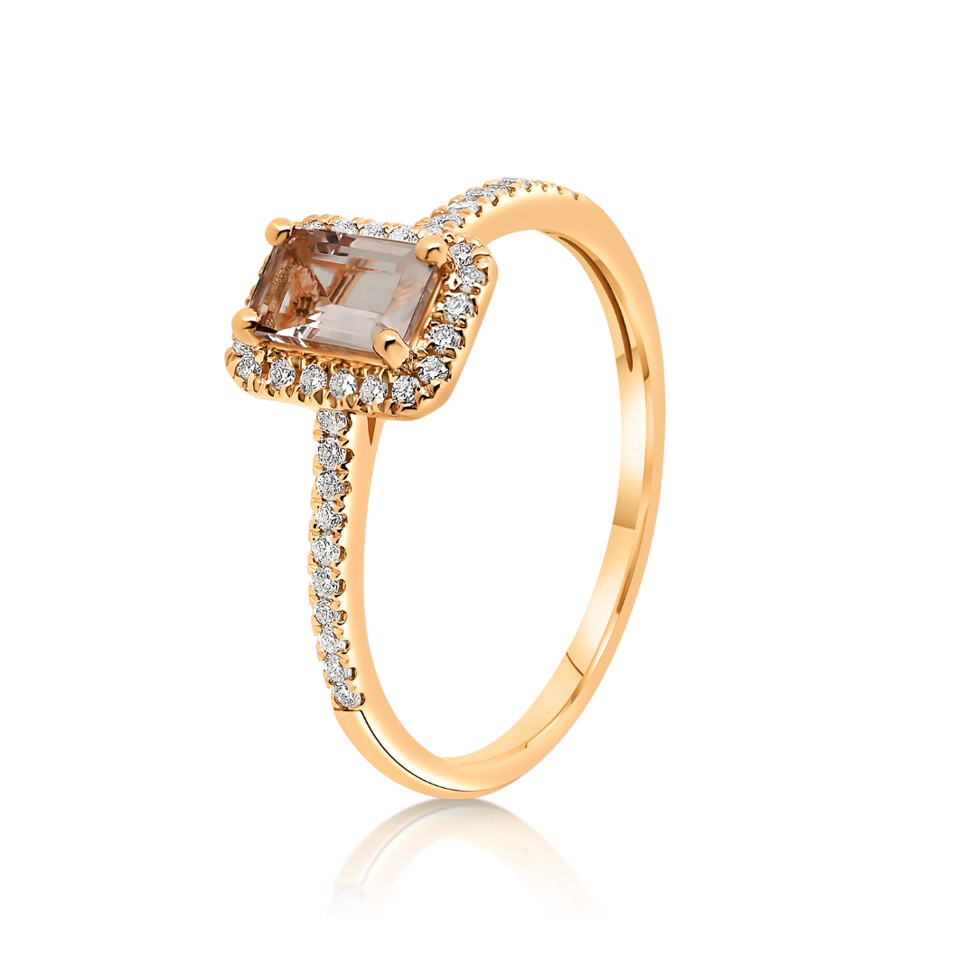 Inel din aur roz de 18K cu un Morganit și 40 de Diamante Round Brilliant.