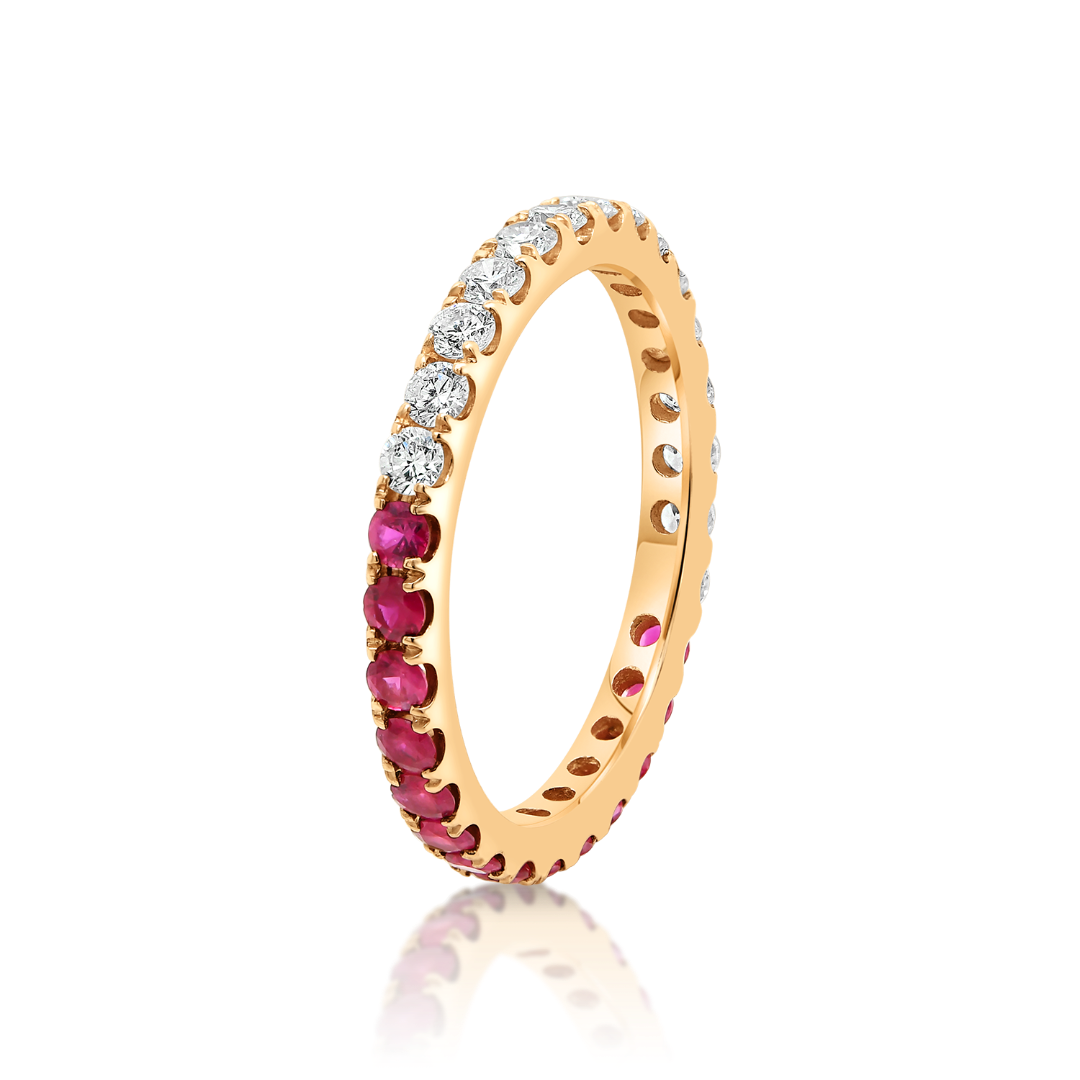 Inel din aur roz de 18K cu Rubine și Diamante naturale