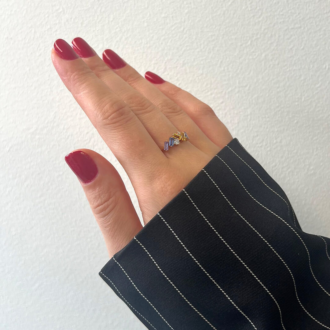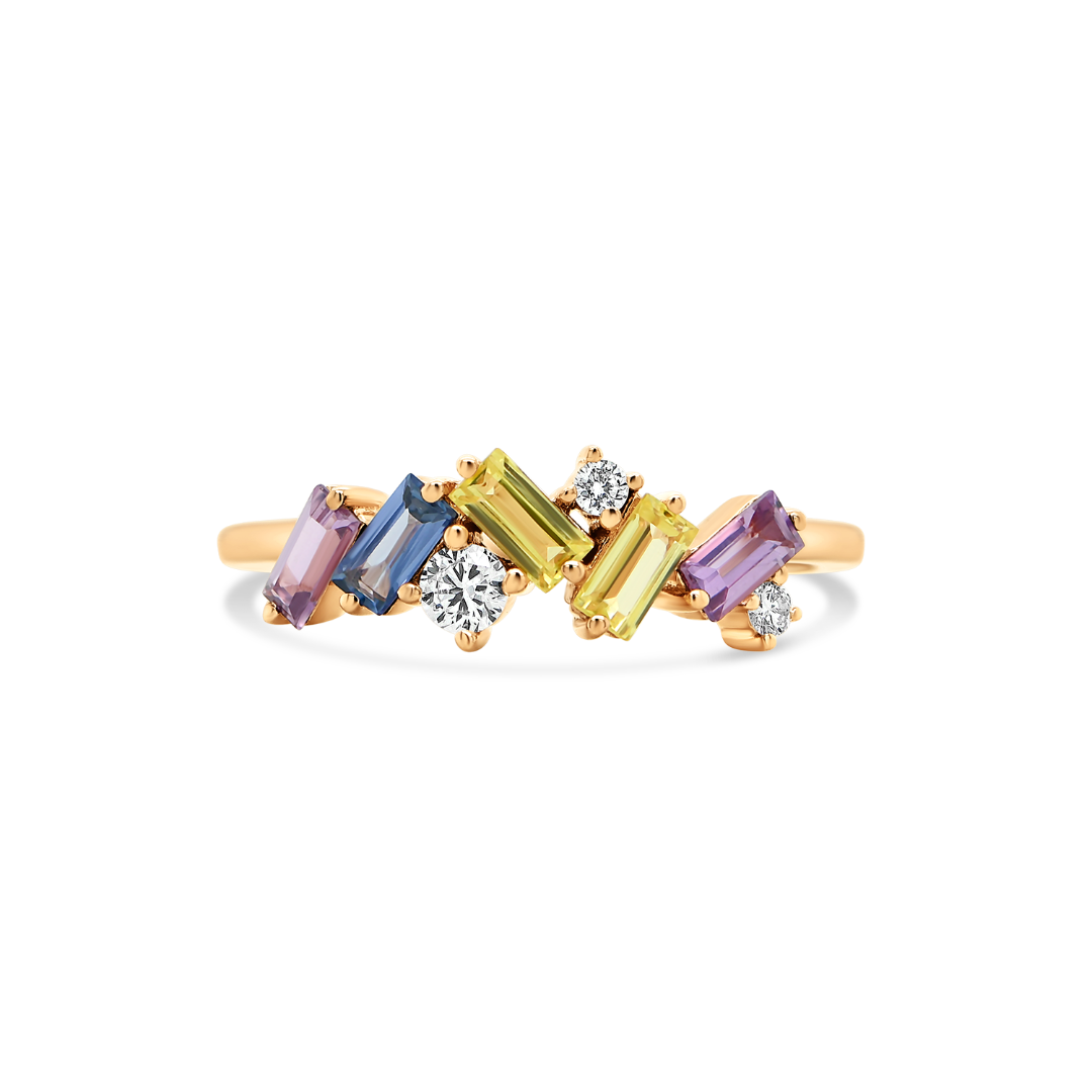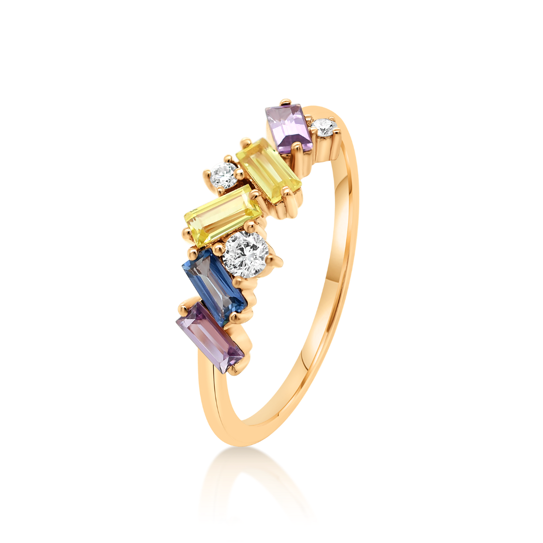 Inel din aur roz de 18K cu Safire Fancy si Diamante naturale