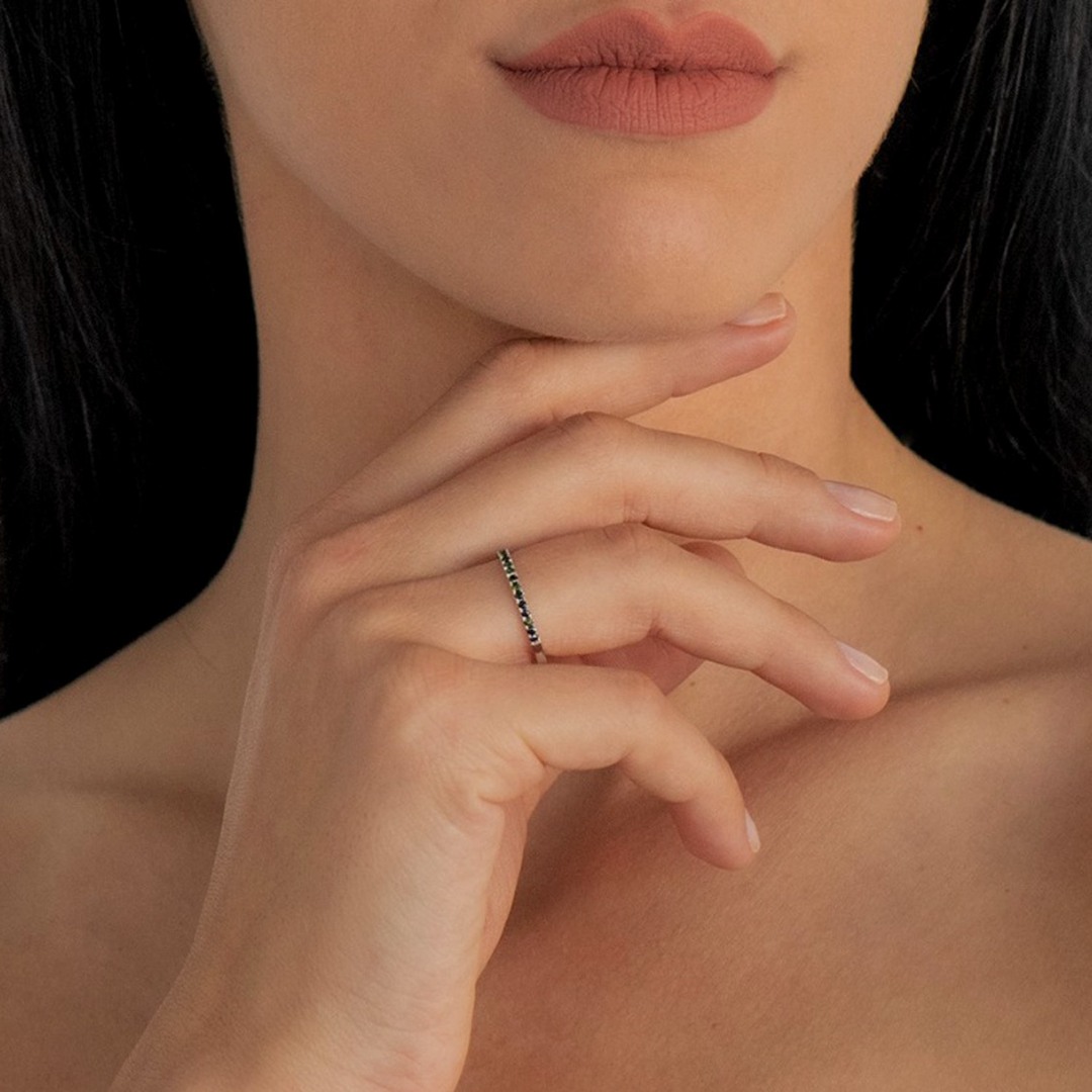 Inel Eternity din aur alb de 18K cu Rodiu negru și Diamante negre naturale.
