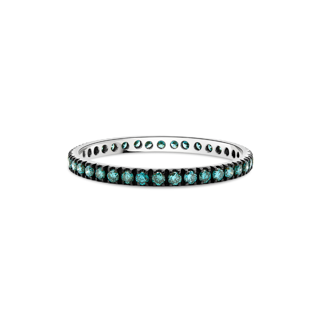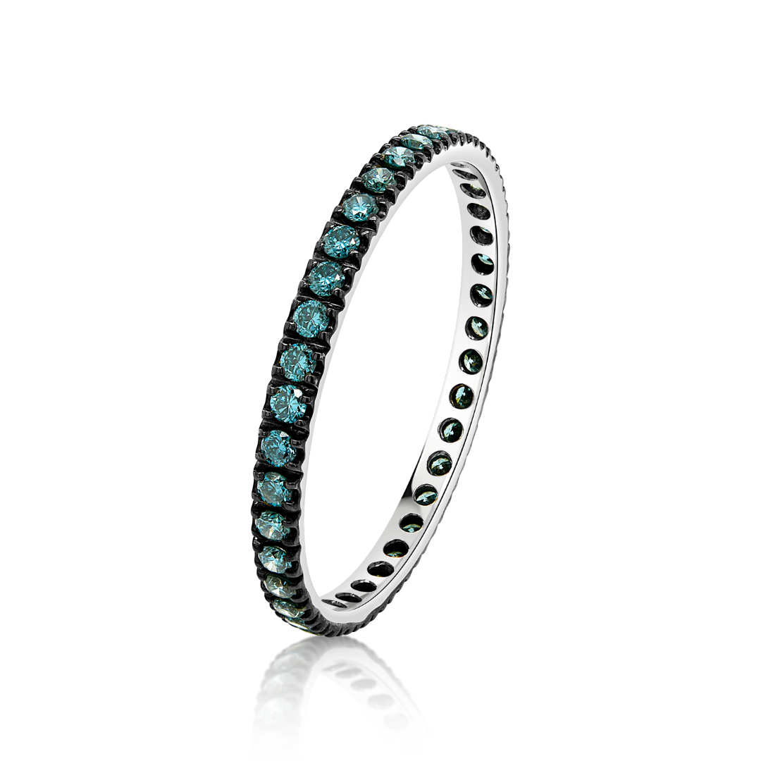 Inel Eternity din aur alb de 18K cu Diamante ice blue naturale și rodiu negru.
