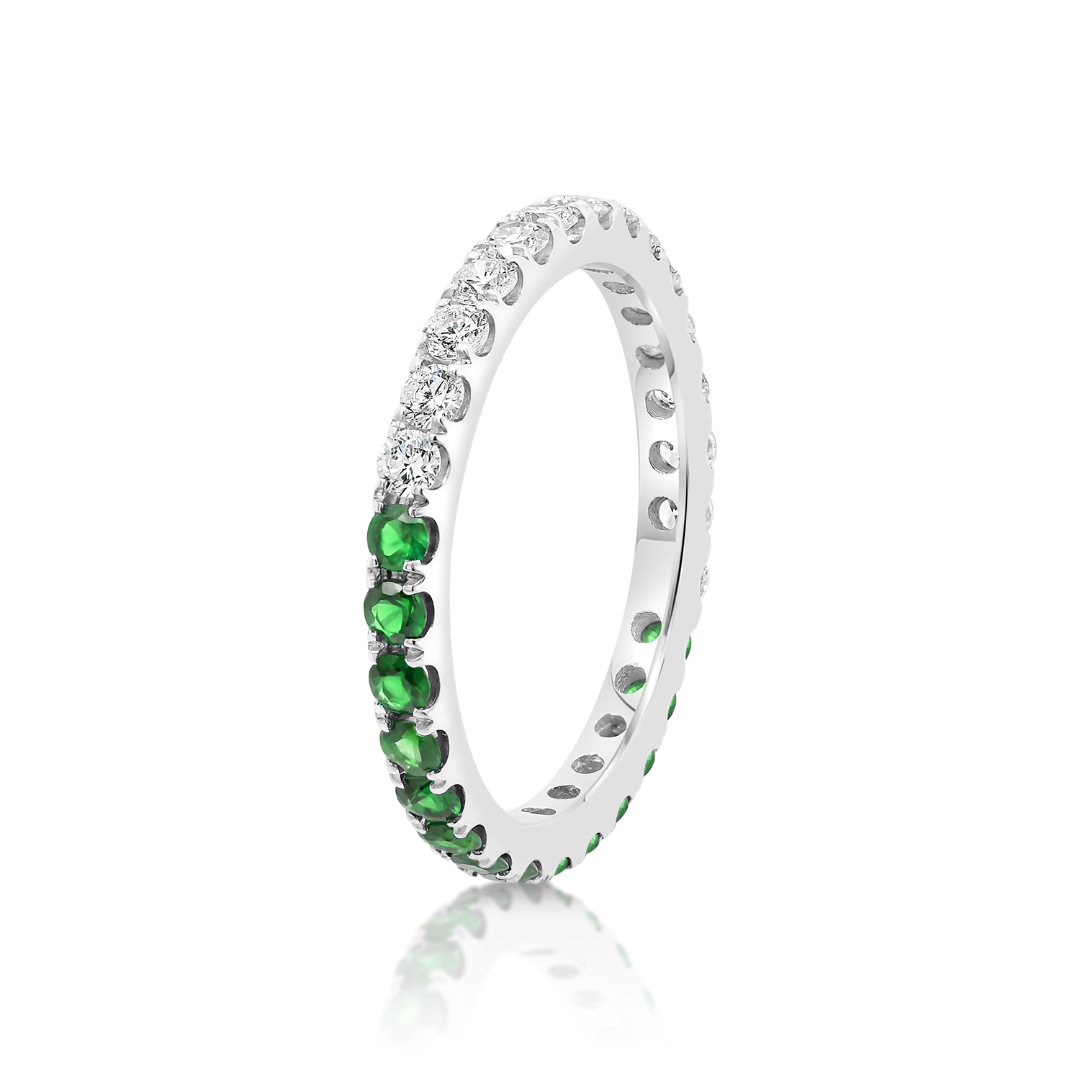 Inel Eternity din aur alb de 18K cu Tsavorite și Diamante naturale
