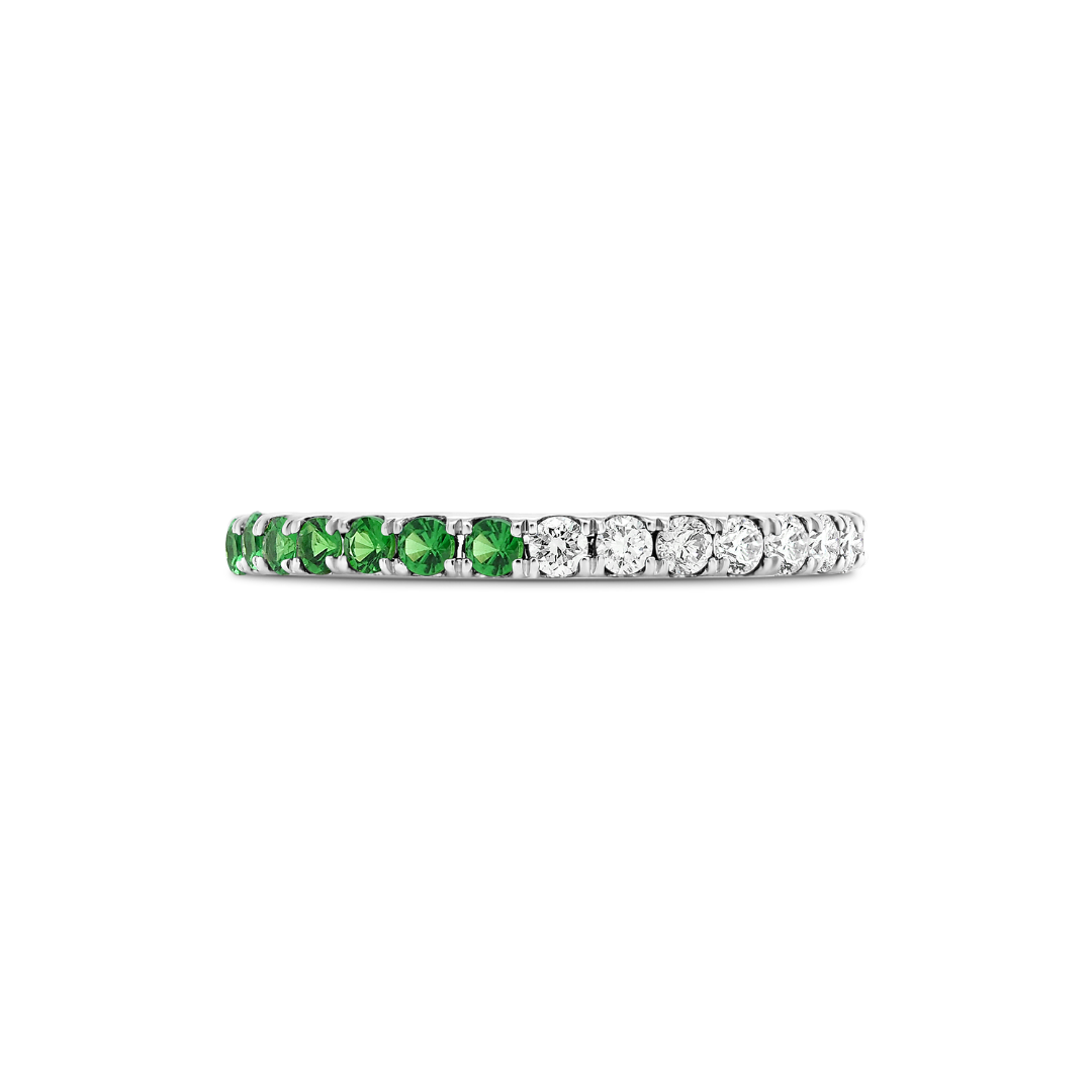 Inel Eternity din aur alb de 18K, cu 15 Tsavorite și 15 Diamante Brilliant cut.