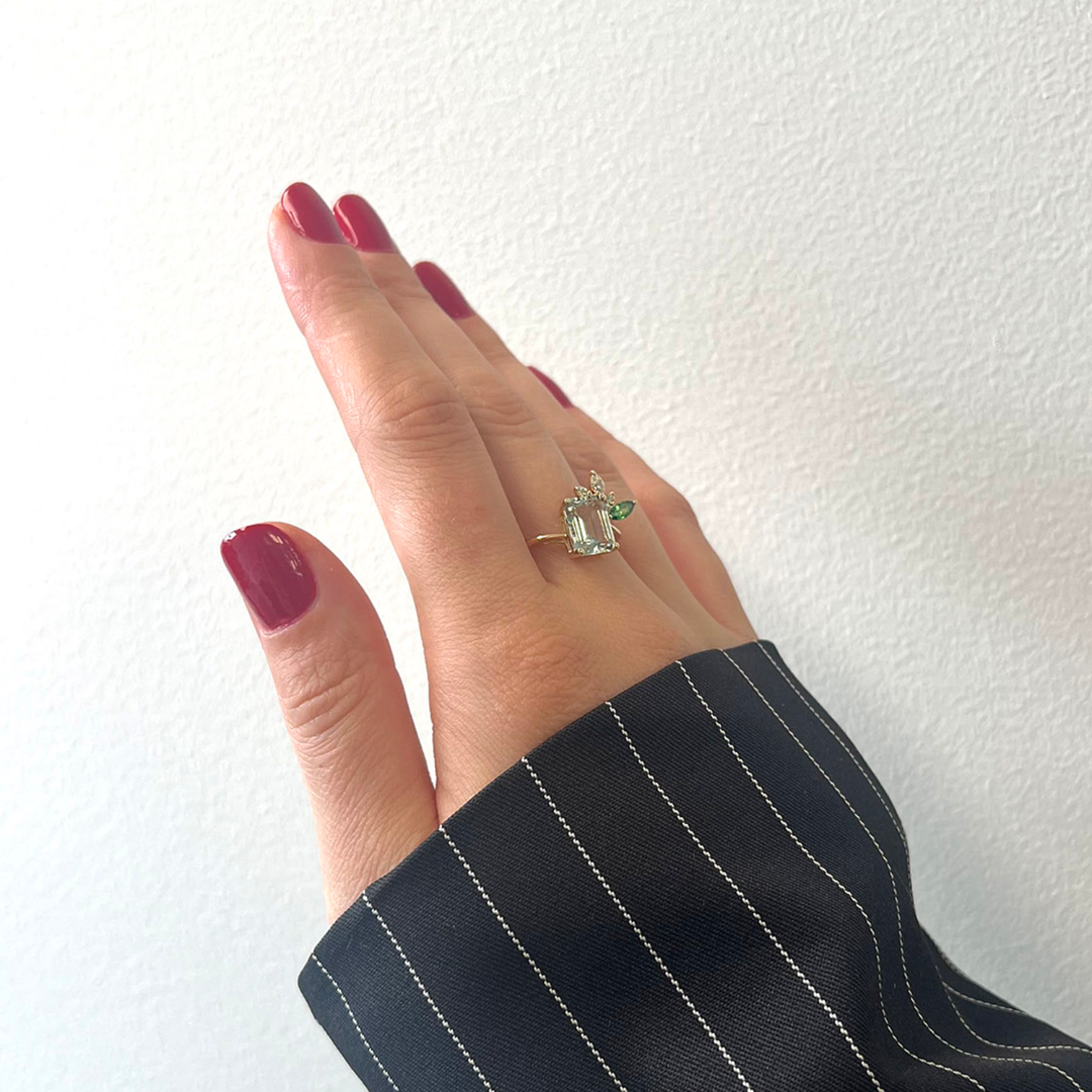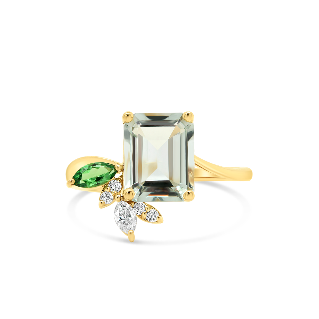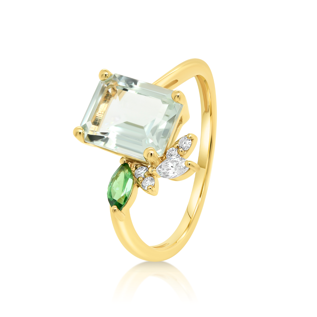 Inel din aur galben de 18K cu Ametist verde, Tsavorit și Diamante naturale