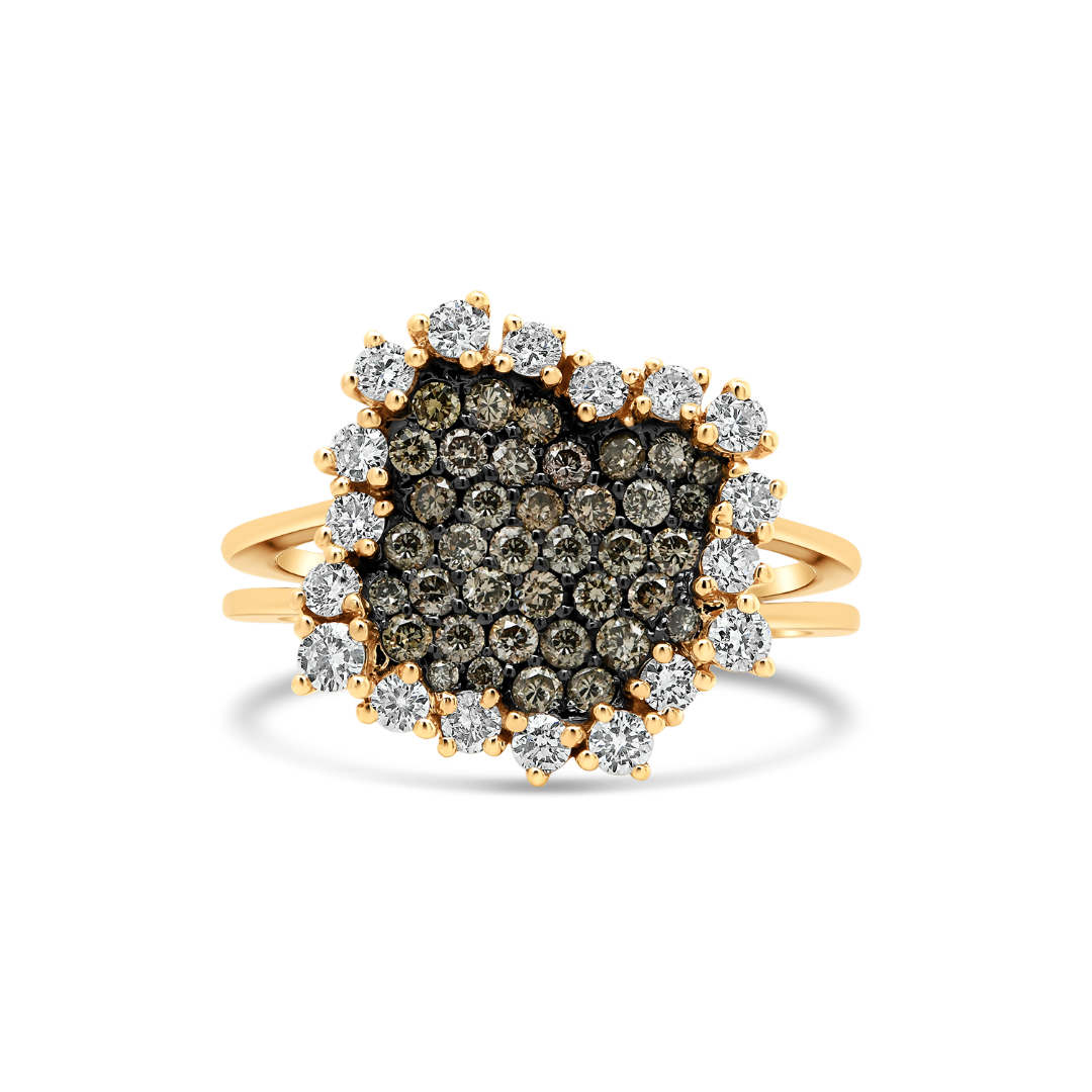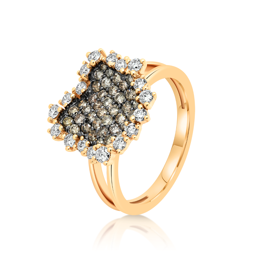 Inel din aur roz de 18K cu Diamante naturale Champagne și incolore.