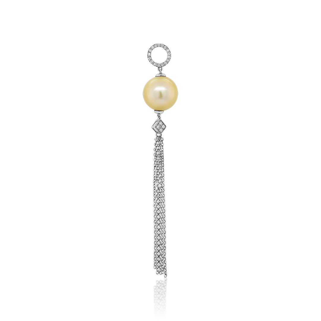Pandantiv din aur alb de 18K încrustat cu Diamante naturale și Perlă