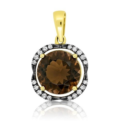 Pandantiv din aur galben de 14K cu Diamante naturale și Smokey Quartz