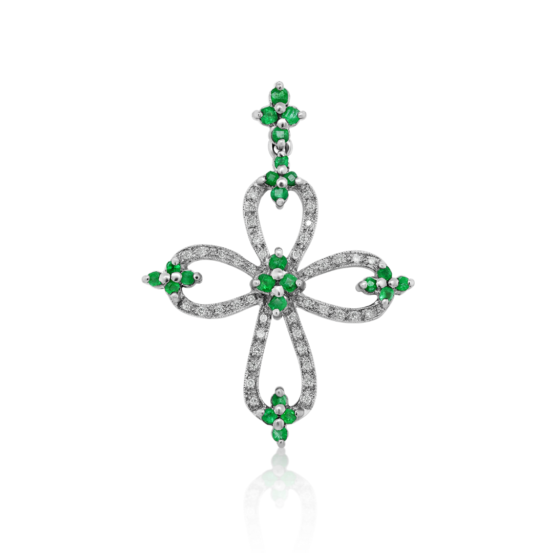 Pandantiv din aur alb de 18K, cu Diamante și Smaralde