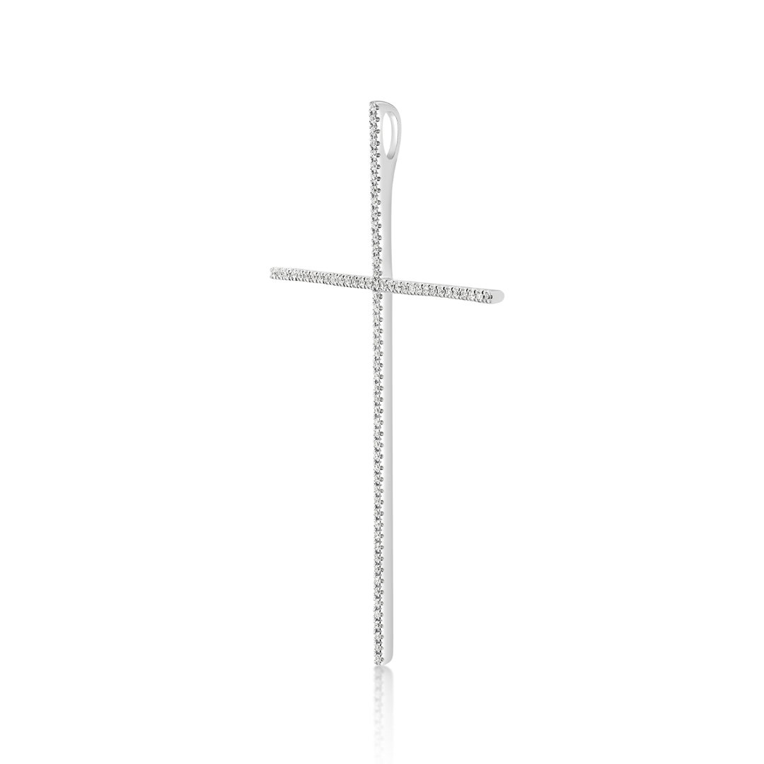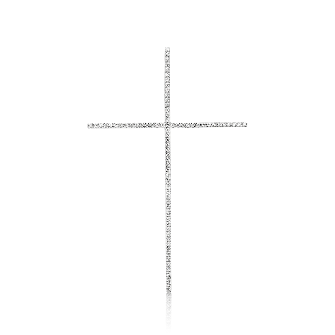 Pandantiv cruce din aur alb de 14K cu Diamante naturale brilliant cut.