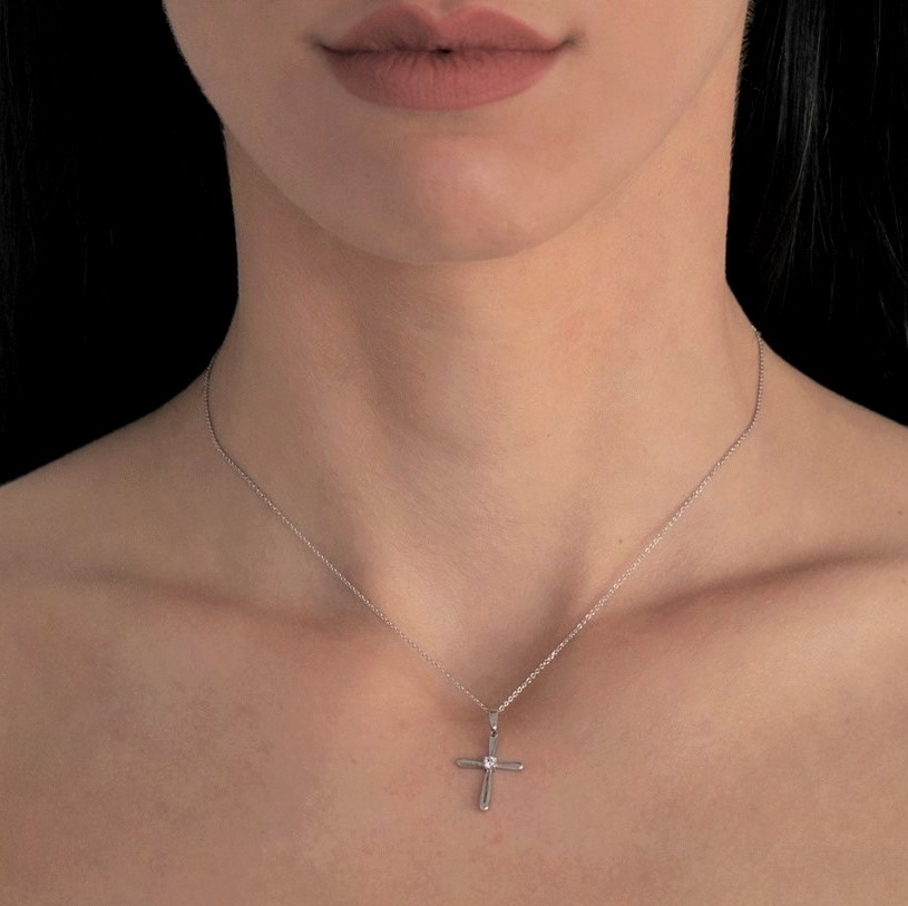 Pandantiv din aur alb de 18K cu Diamant natural