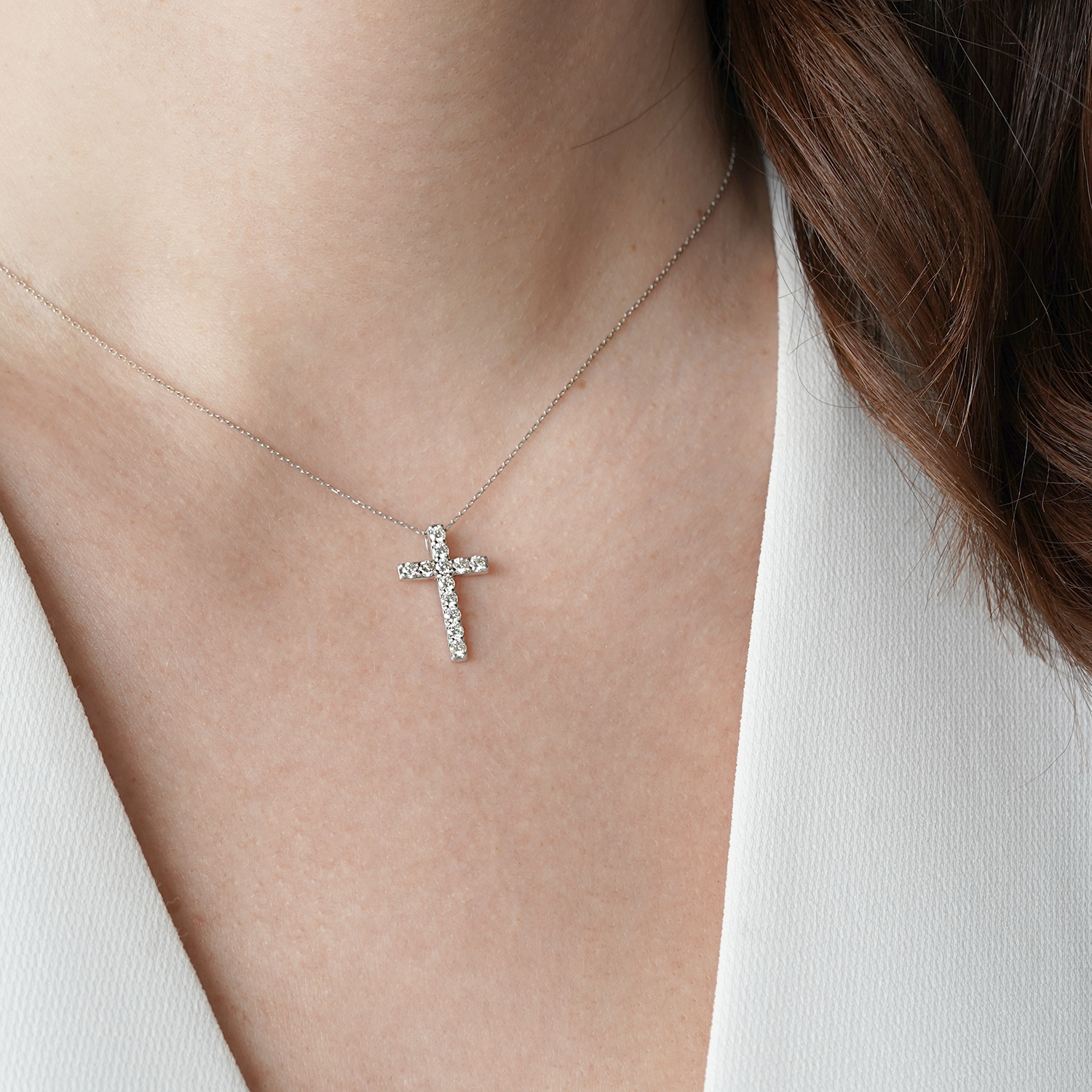 Pandantiv din aur alb de 18K cu Diamante naturale