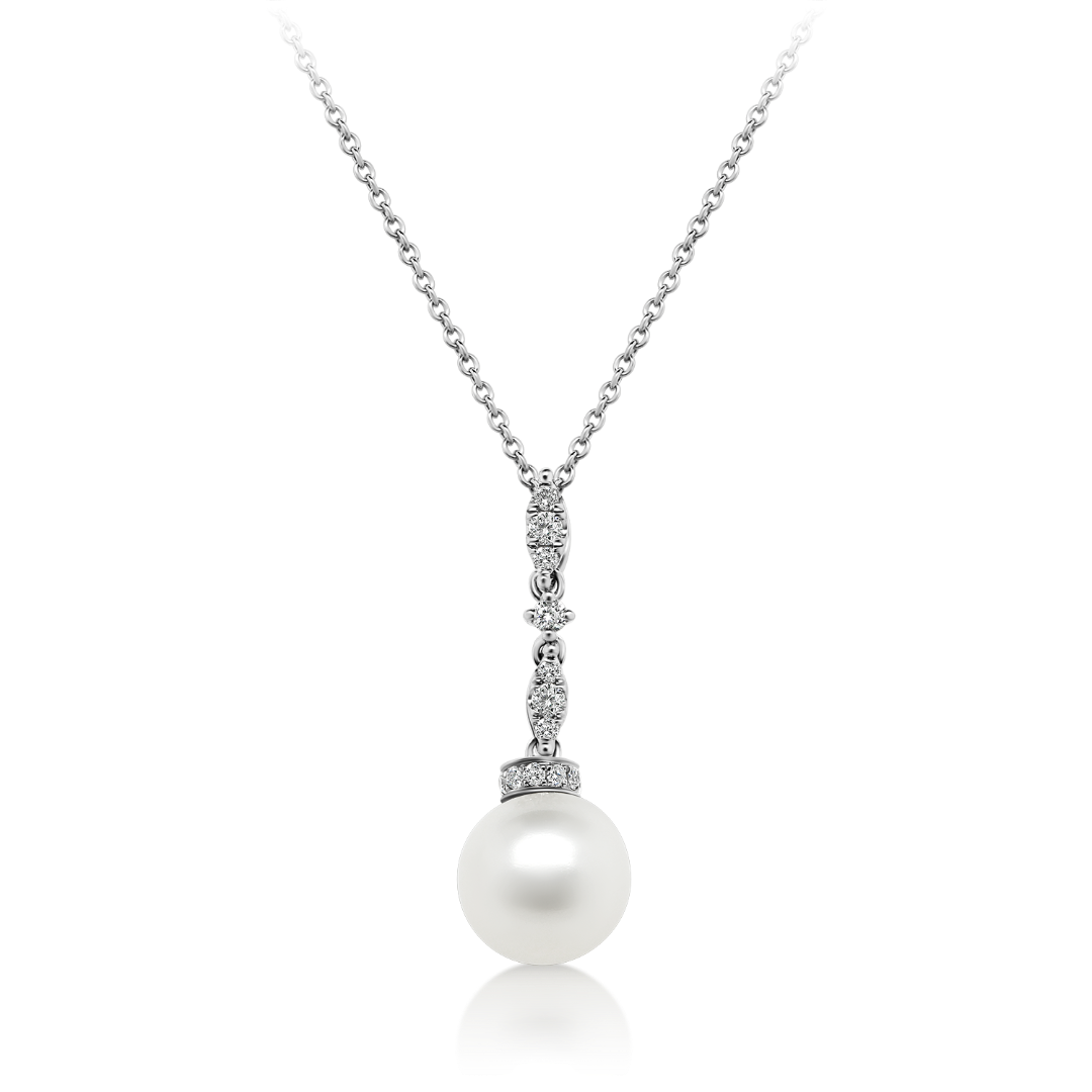 Pandantiv din aur alb de 18K, cu Diamante naturale si Perlă