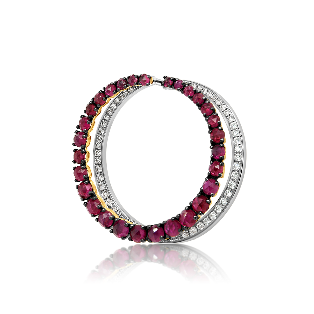 Pandantiv din aur alb de 18K cu Rubine și Diamante naturale.
