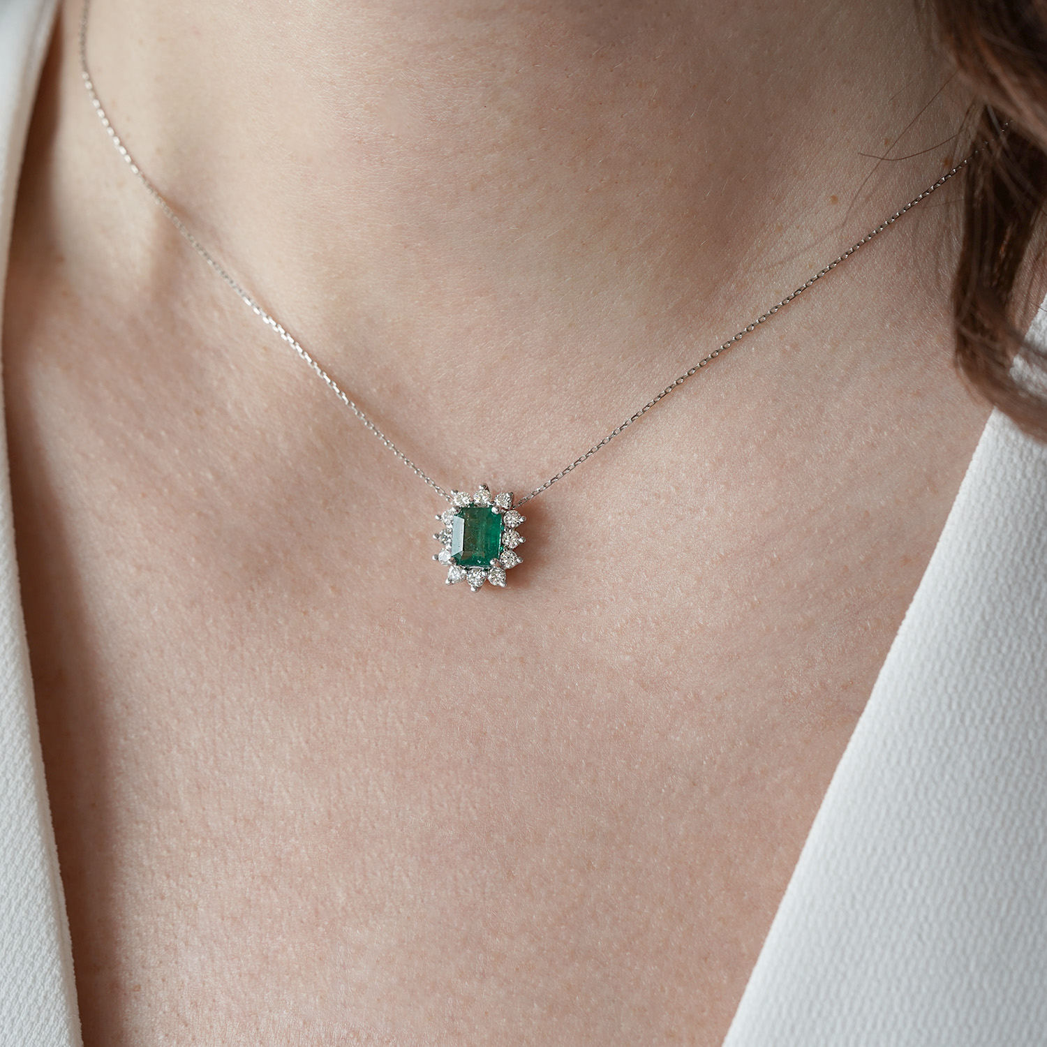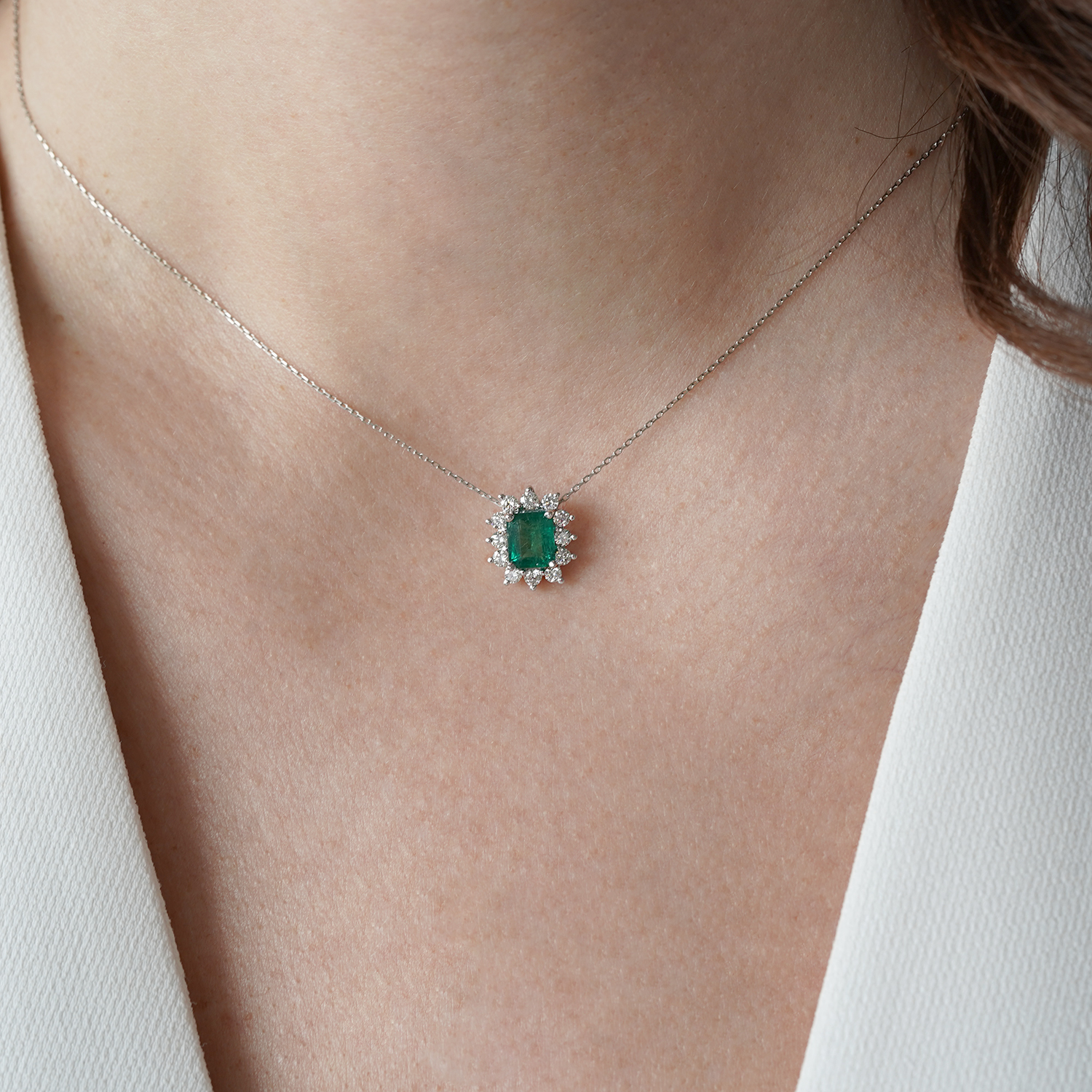 Pandantiv din aur alb de 18K cu Smarald natural certificat GFCO