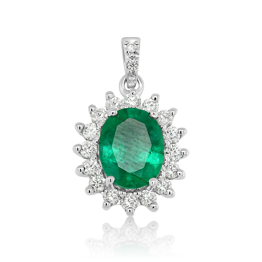 Pandantiv din aur alb de 18K cu Smarald natural certificat IGS și Diamante naturale.